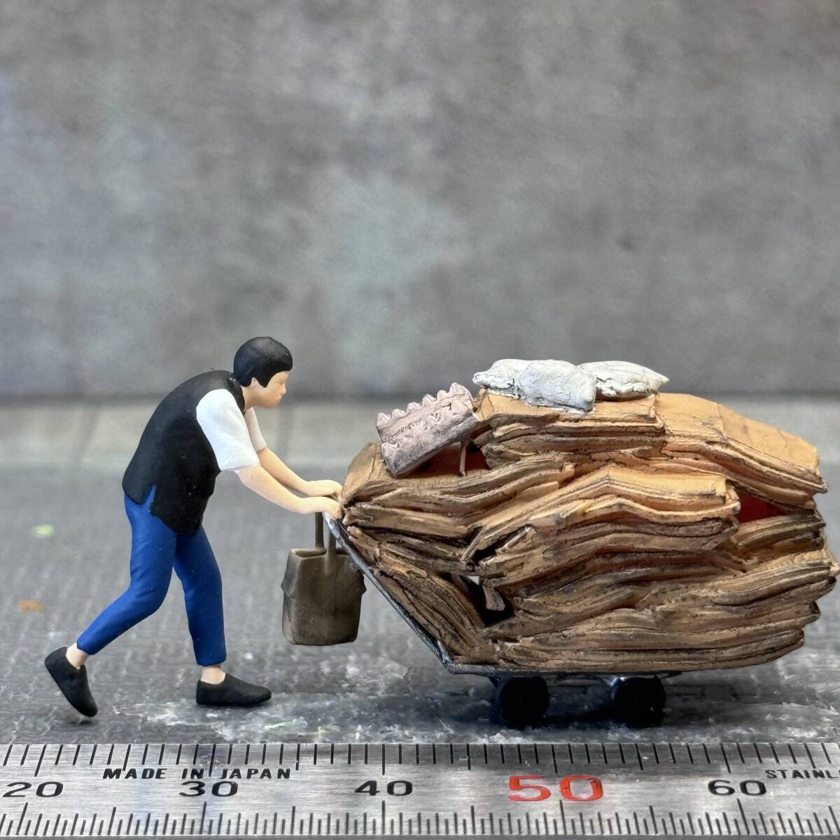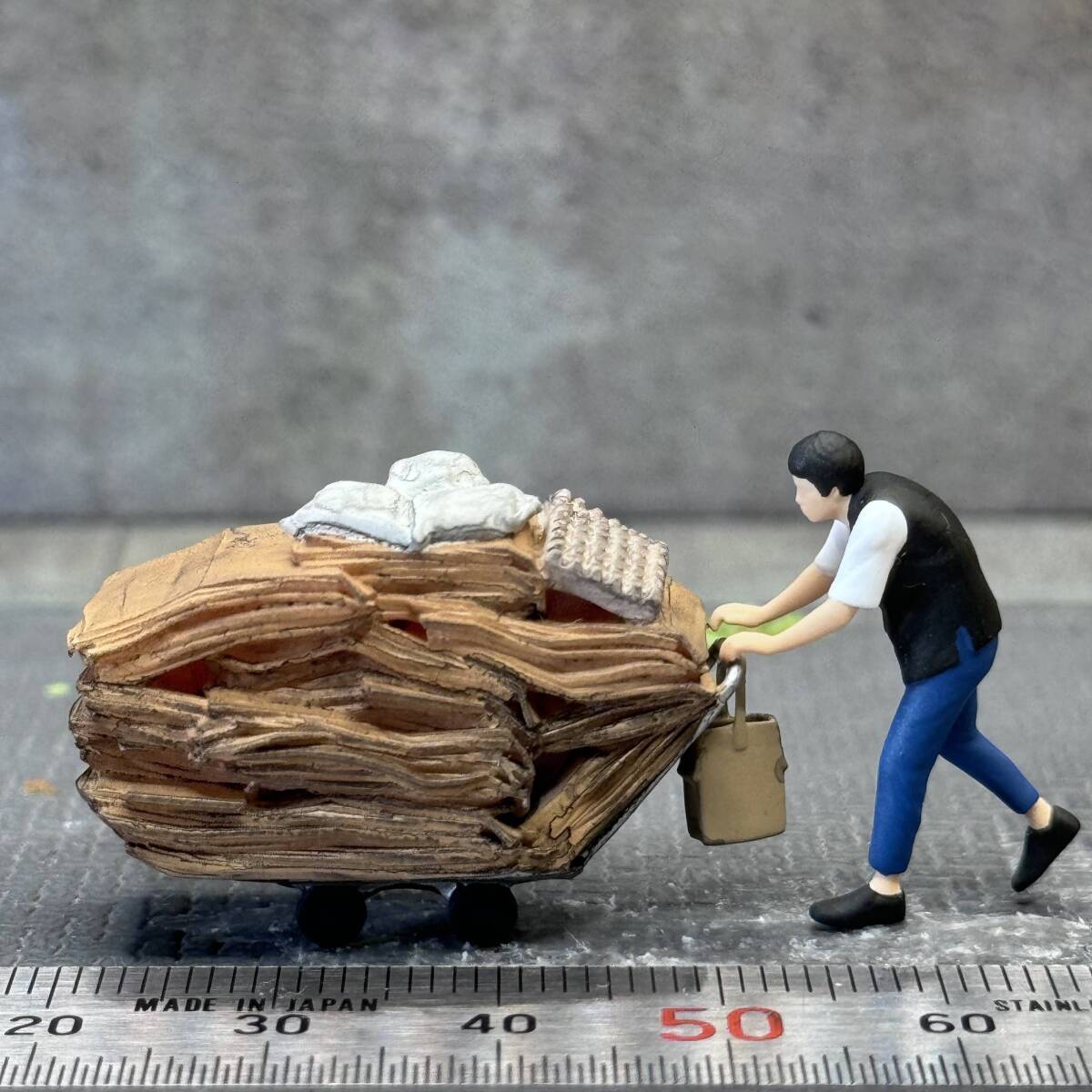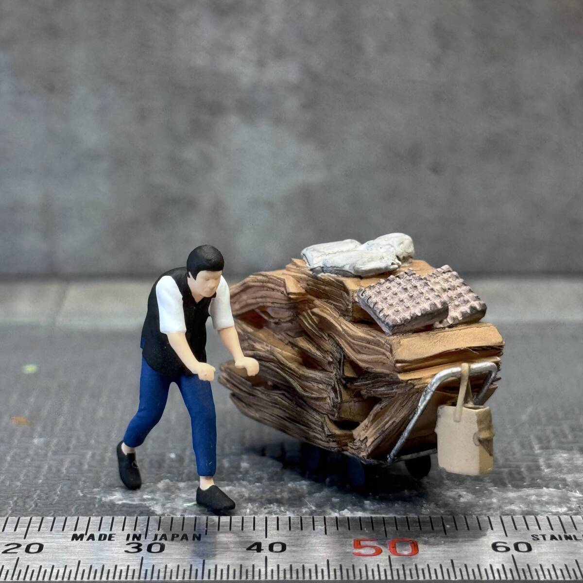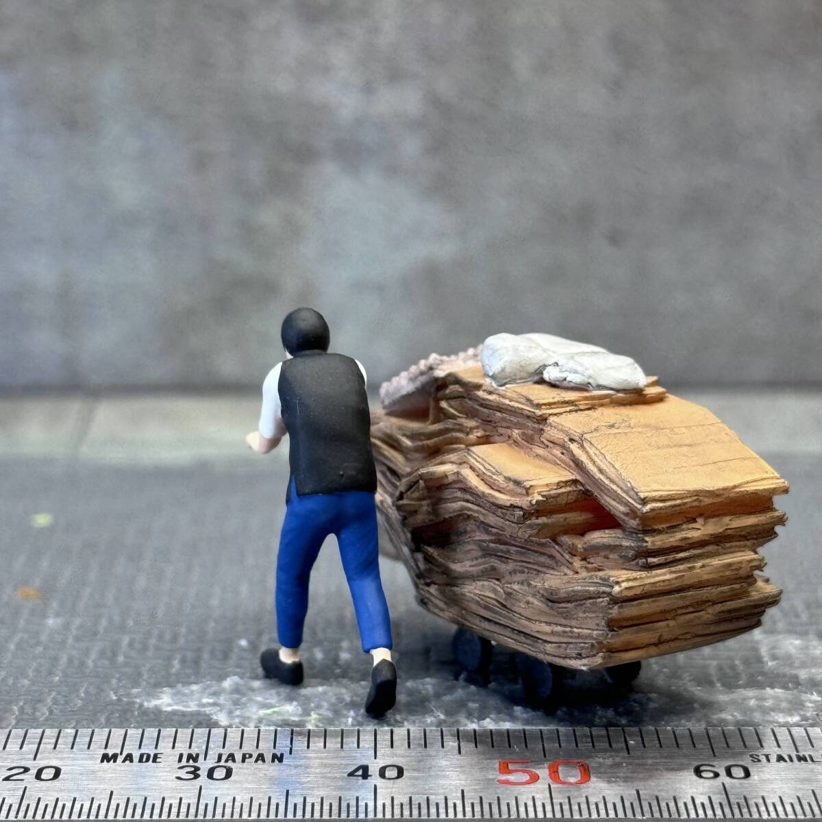 【KS-719】1/64 スケール 段ボールを運ぶ男性 セット フィギュア ミニチュア ジオラマ ミニカー トミカ