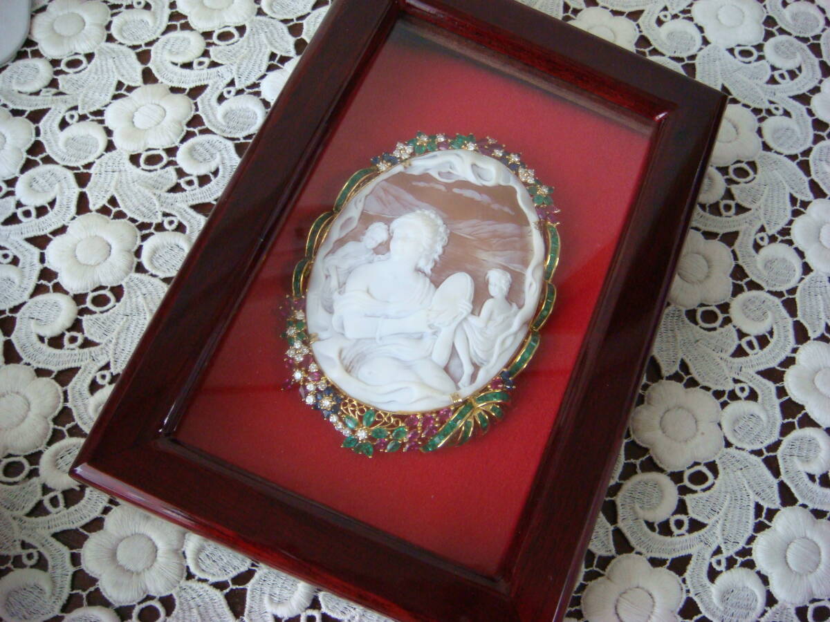◎セレブ 特大 宝石カメオ エメラルド ダイヤ サファイヤ ルビー 額入り◎