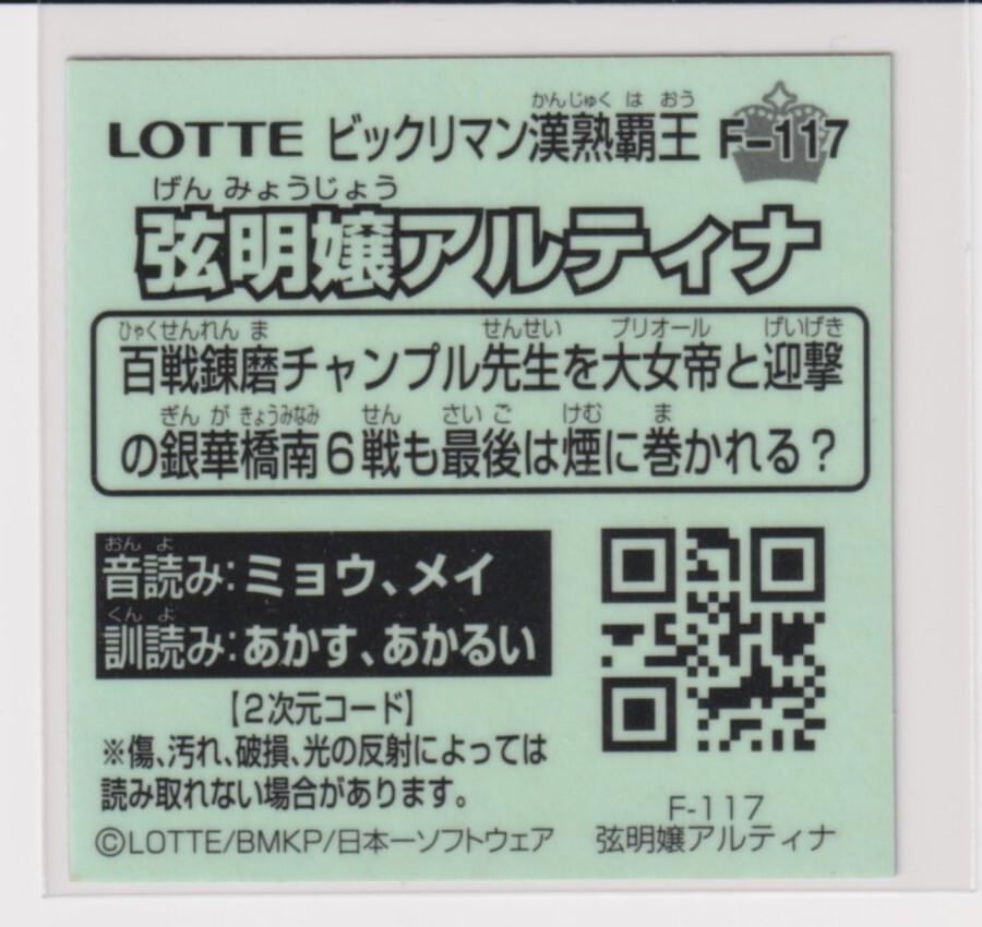 ビックリマン漢熟覇王 漢熟バトルシール 3弾  F-117 弦明嬢アルティナ b