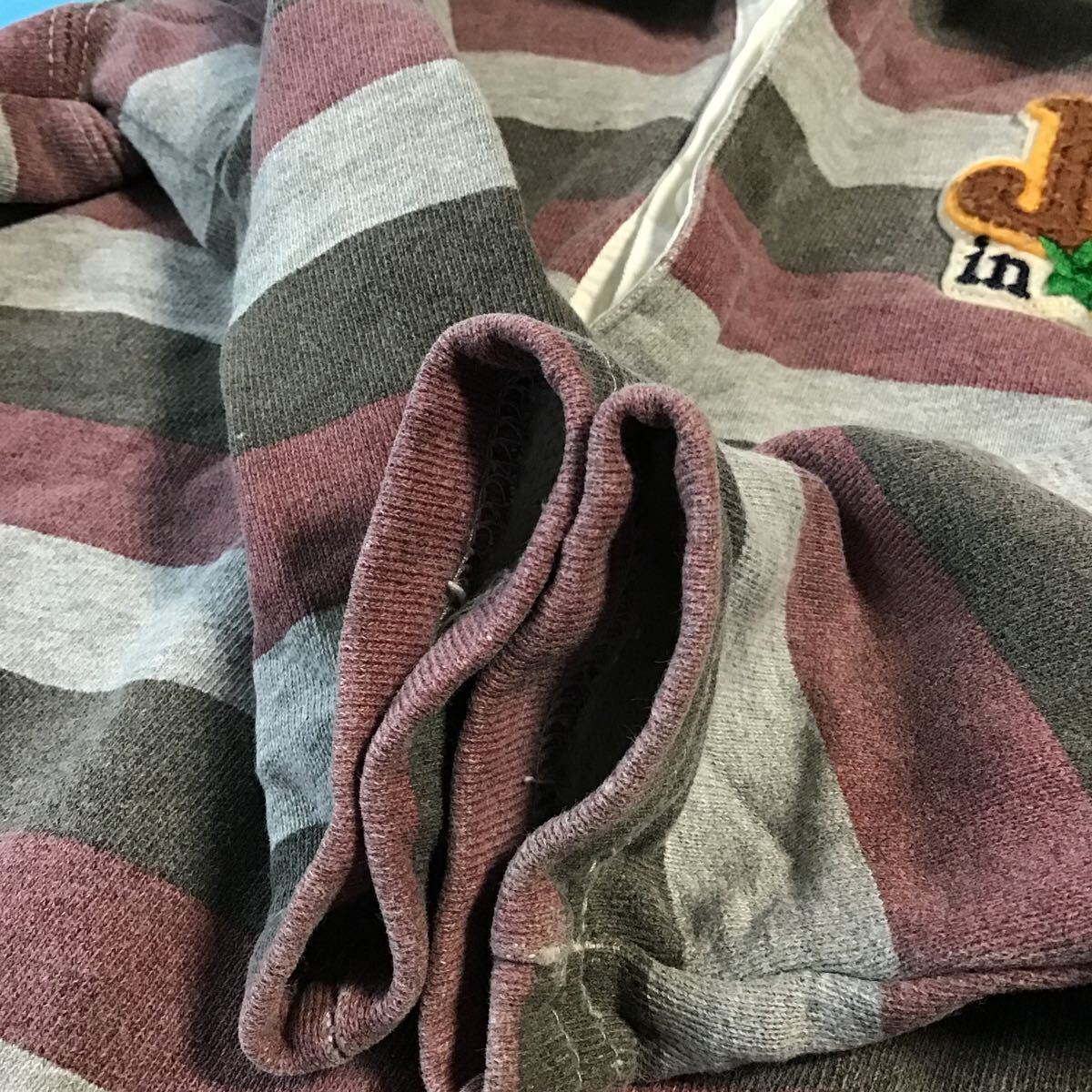 used品ですので、ヨレや全体的な目立った色あせあります。また、袖口内側にスレがあります。目立った汚れはありません。