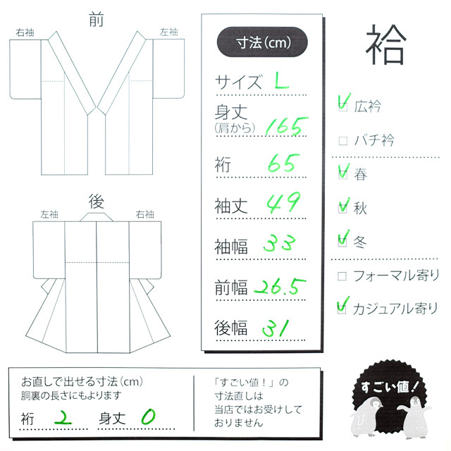■お着物の身丈は、身長±5cmでしたら、じゅうぶんお召し頂けます。