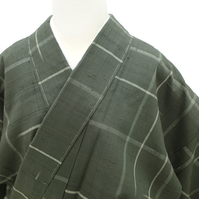 【新古品】 すごい値! 紬 着物 袷 正絹 未使用 幡座 濃グレー 格子 チェック カジュアル 新古品 仕立て上がり 身丈165 裄丈65 Lサイズ 春 秋 冬 未使用 普段着 観劇 お食事 ショッピング お出かけ など 販売 購入 リサイクル すごいね みやがわ nek00614