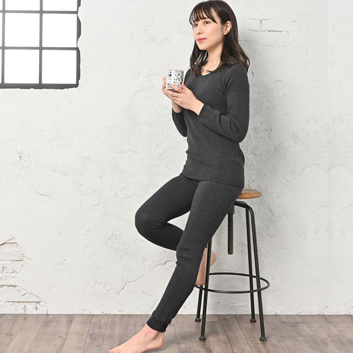 足首までの9分丈とリブニットで仕上げた裾が、どんなコーディネイトにも合わせやすいデザインです。寒い季節に大活躍します。