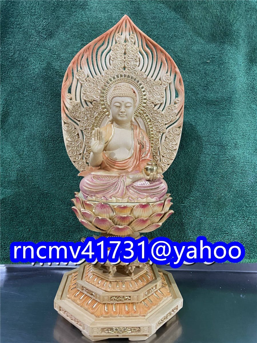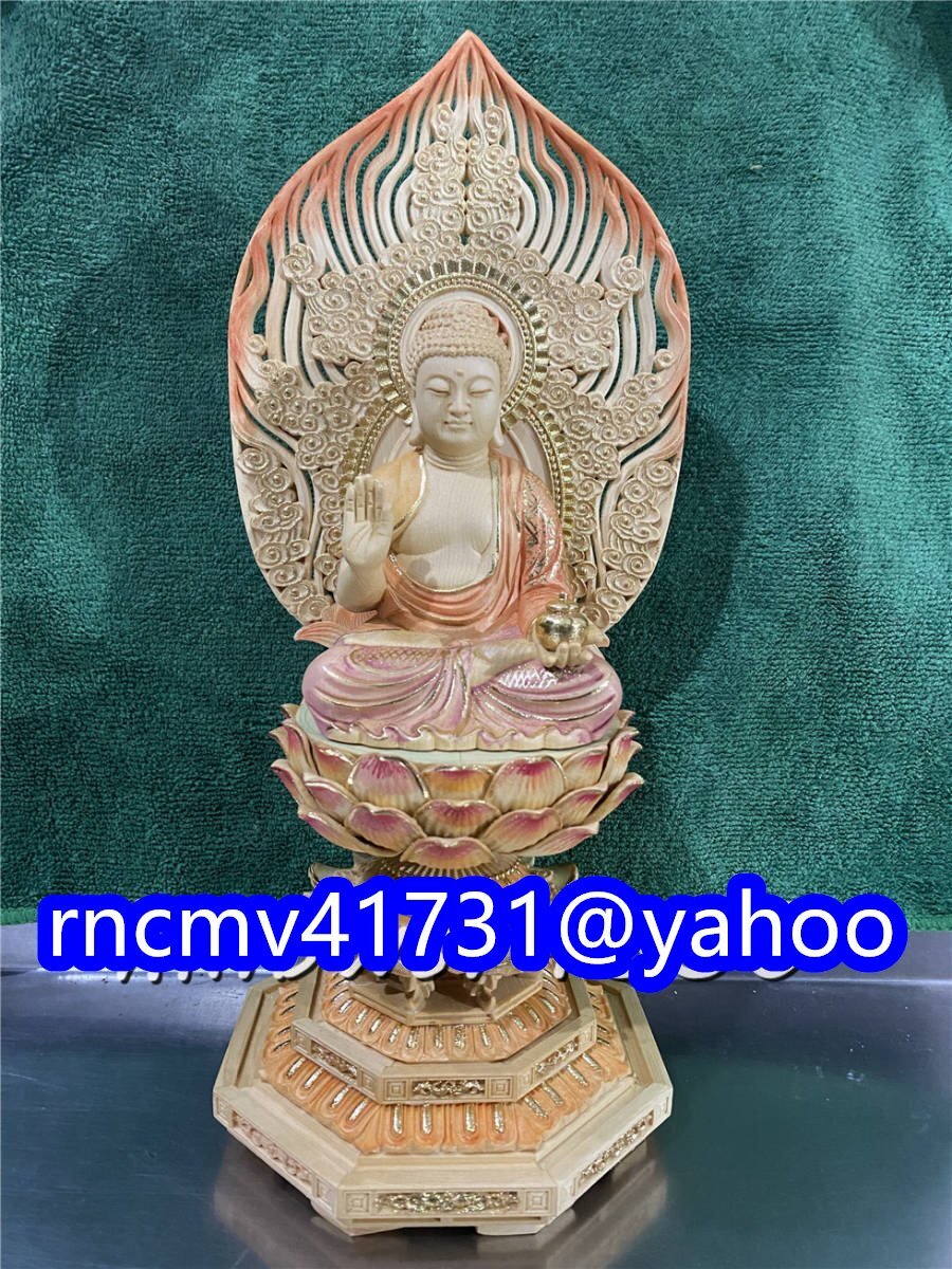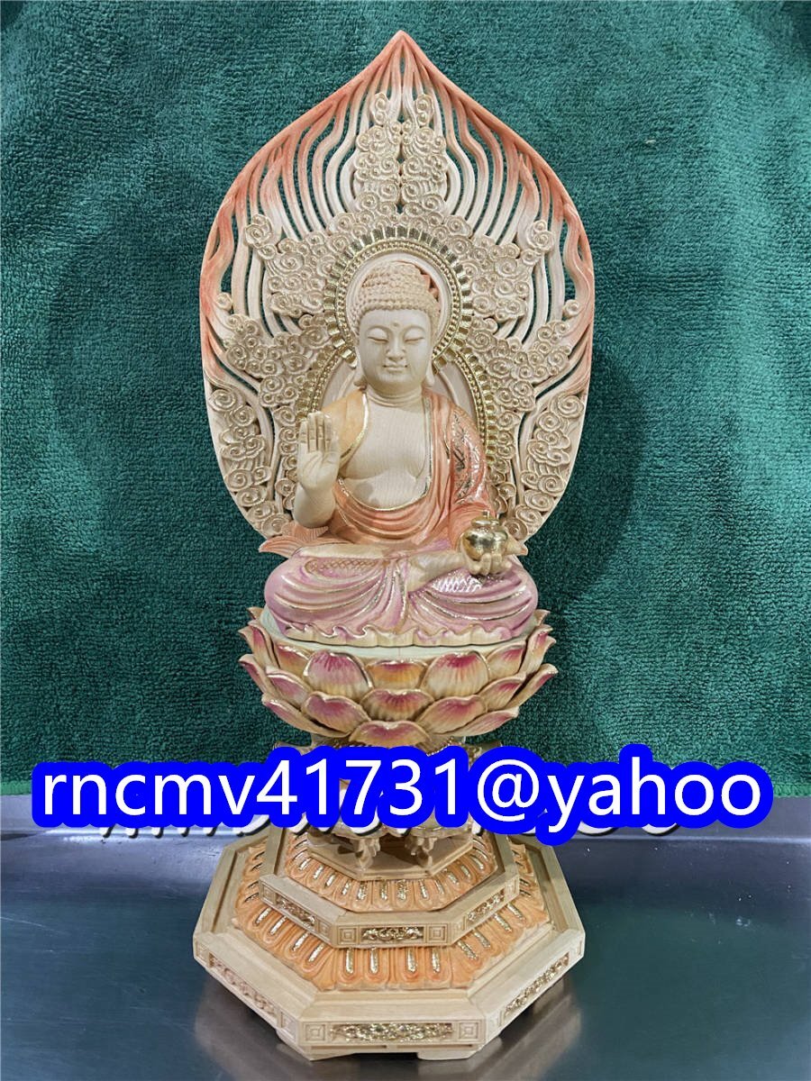 「81SHOP」 仏教美術 薬師如来 薬師瑠璃光如来坐像 仏像 彫刻 ヒノキ檜木 自然木 職人 手作り 置物 美術品 東洋彫刻 高さ32cm