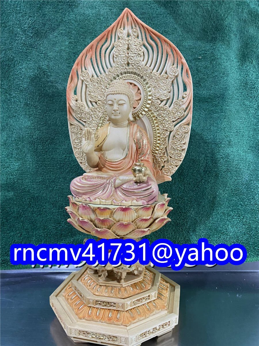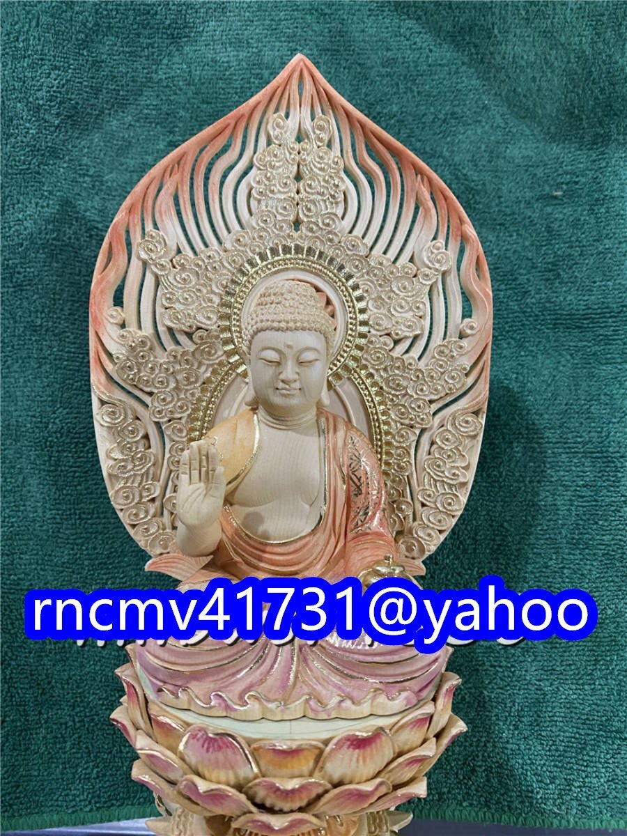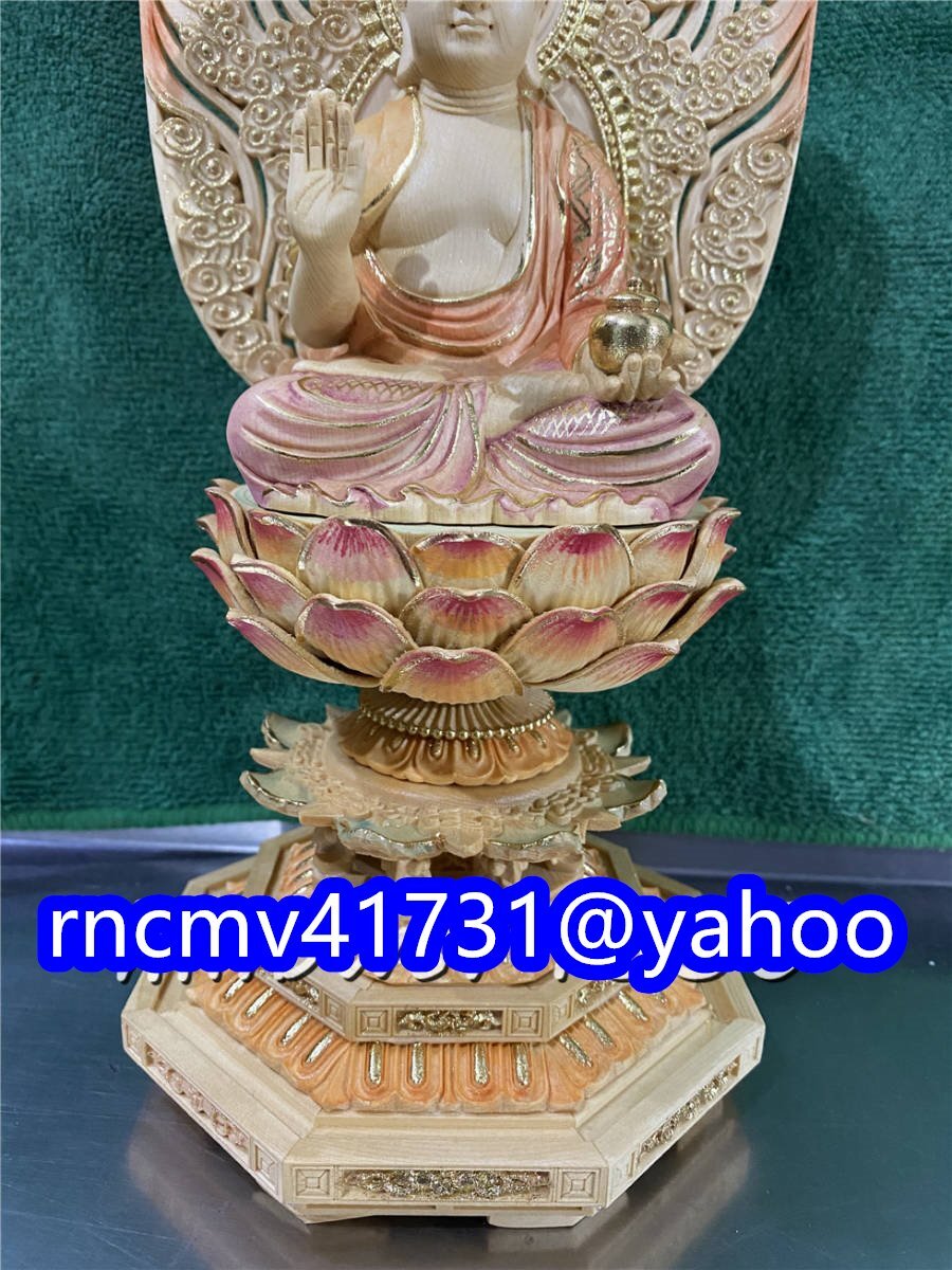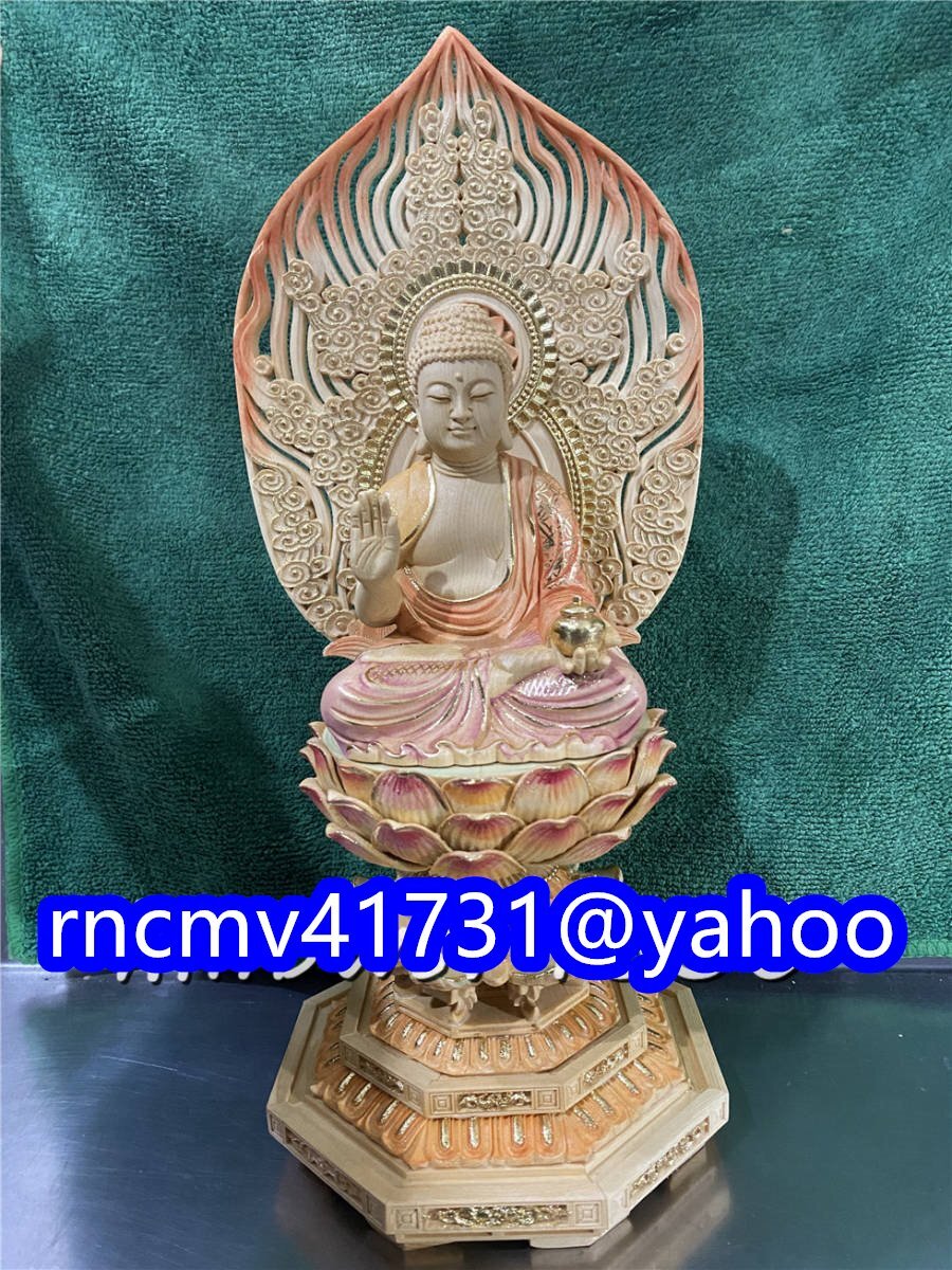 「81SHOP」 仏教美術 薬師如来 薬師瑠璃光如来坐像 仏像 彫刻 ヒノキ檜木 自然木 職人 手作り 置物 美術品 東洋彫刻 高さ32cm