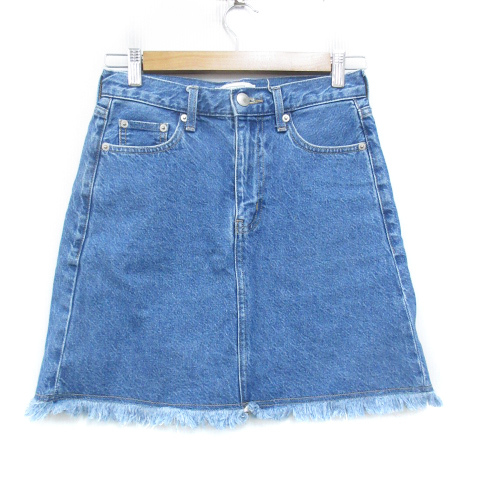 ローリーズファーム LOWRYS FARM デニムスカート 台形スカート ミニ丈 フリンジ M 青 ブルー /FF22 ■MO レディース