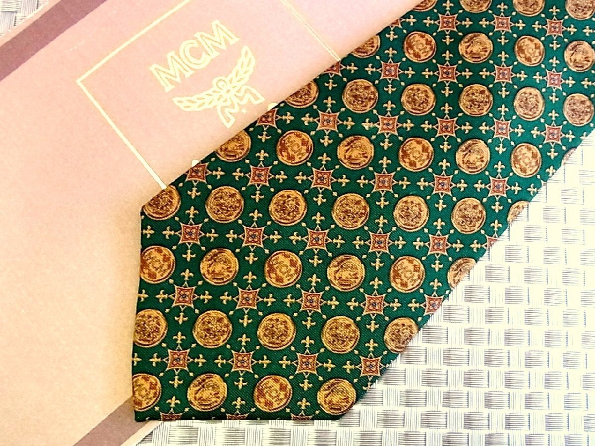 ★RB0422★【コイン メダル 花 デザイン ロゴ入 柄】エムシーエム【美品】ネクタイ