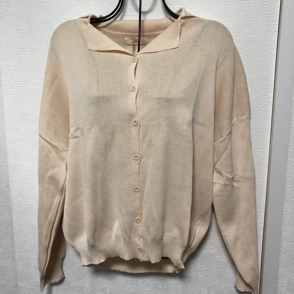 新品【Fillil/フィリル】襟付きカーディガン 冷房除け袖付け ゆったり 肩落ちデザイン ふんわりシルエット フリーサイズ