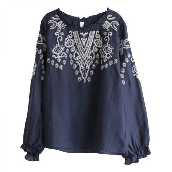 LRM045★M-4XLサイズ ♪ 秋新作 カジュアル 大きいサイズ 綿麻 ゆったり おしゃれ 刺繍入り 普段着 長袖 ブラウスシャツ チュニック