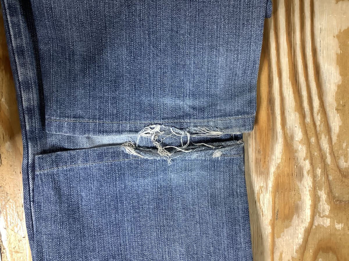 膝付近にて生地ダメージがございます。
