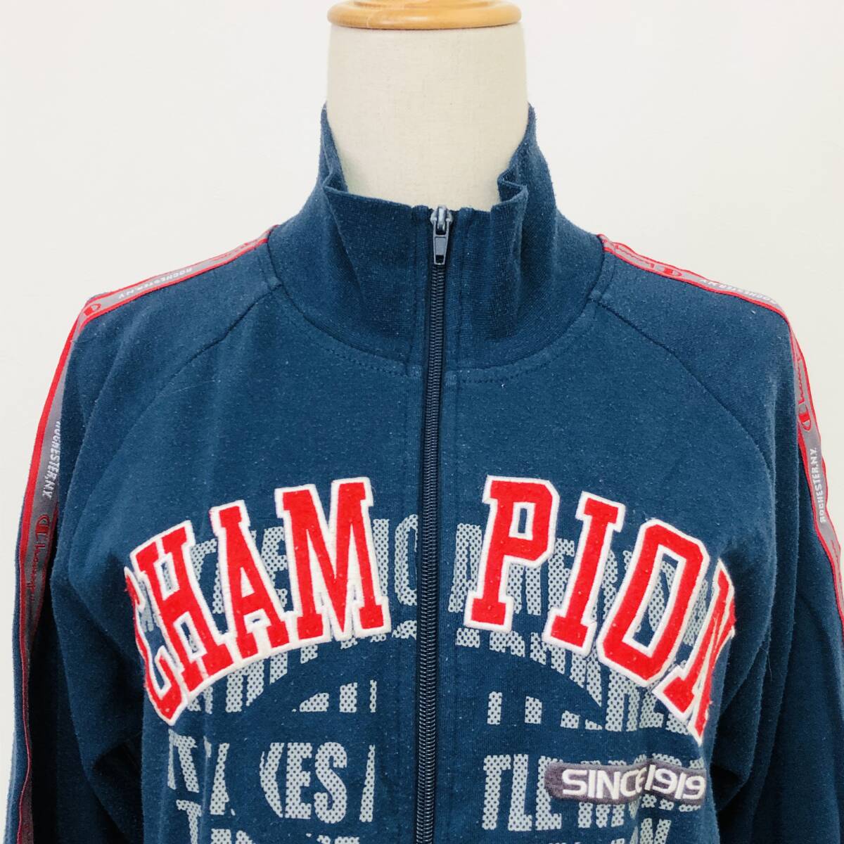 a04105 Champion チャンピオン トレーナー フルジップ 綿混 ロゴワッペン ポケット 150 ネイビー 男の子ベーシックカジュアルスタイル