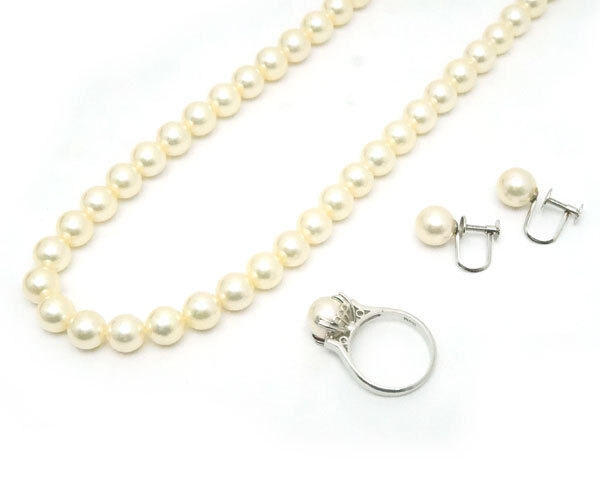 パールのリング・ネックレス・イヤリングセットです。大変お求めやすい価格となっております。 【お問い合わせ番号】601081 【素材】リング:Pt900プラチナ ネックレス:シルバー金具 イヤリング:Pt850プラチナ 【宝石1】パール リング:8mm珠 ネックレス:6.5mm珠 イヤリング:7mm珠 【刻印】リング:Pt900 ネックレス:SILVER イヤリング:Pt850 【サイズ】リング:約8号 ネックレス:約42cm 【重量】リング:約4.5g ネックレス:約33.4g イヤリング:約2.6g 【付属品】保証書 【状態】中古B+ スレ・傷が多くみられます。ネックレスのワイヤーに若干のたるみが感じられます。 ジュエリー アクセサリー レディース 首飾り 指輪 耳飾り 真珠 WASE 金性(貴金属純度) 金の金性はカラット(24分率)/パーミル(1000分率)の2種類の表記があります。 割金の種類で、イエロー、ピンク、ホワイトゴールド等と色調に種類があります。 プラチナとシルバーの金性はパーミル(1000分率)表記をします。 ・ゴール:K24/9999(純金) K18/750 K14/585 K9/375 ・プラチナ:Pt1000 Pt950 Pt900 Pt850 ・シルバー:SV1000 SV925(スターリングシルバー) ダイヤモンドの品質評価 アメリカ宝石学協会GIAの4Cシステムに準拠しています。 ・Caratキャラット:重量(大きさ)です。1.0ct=0.2gです。 0.2~0.1ct以下の小粒ダイヤモンドを"メレダイヤ"と呼ぶことがあります。 ・Clarityクラリティ:内包物や表面傷の大小多少です。10倍拡大した状態で検査します。 高品質← FL IF VVS1 VVS2 VS1 VS2 I1 SI2 I1 I2 I3 →低品質 ・Colorカラー:多くのダイヤモンドにはイエローやブラウンの色が少し含まれています。 高品質← 無色(DEF) ほぼ無色(GHIJ) わずかに有色(KLM) 有色(underN) →低品質 ・Cutカット:プロポーション(バランス)とポリッシュ(仕上研磨)の良し悪しです。 高品質← Excellent VeryGood Good Fair Poor →低品質 真珠の品質評価 ・カラーに品質の上下はありません、お好みでお選びください。 ・シェープは外形をラウンド(球体)、セミラウンド(ほぼ球体)、セミバロック(やや変形)、バロック(変形)、 またオーバル(楕円)、ドロップ(水滴)、サークル(線入り)等で表しています。 ・光沢性は照り・真珠層巻厚を、A非常に良い、B良い、C普通、D劣る、の4段階で表しています。 ・平滑性はキズ・シワを、A非常に少ない、Bやや少ない、Cやや多い、D多い、の4段階で表しています。 |