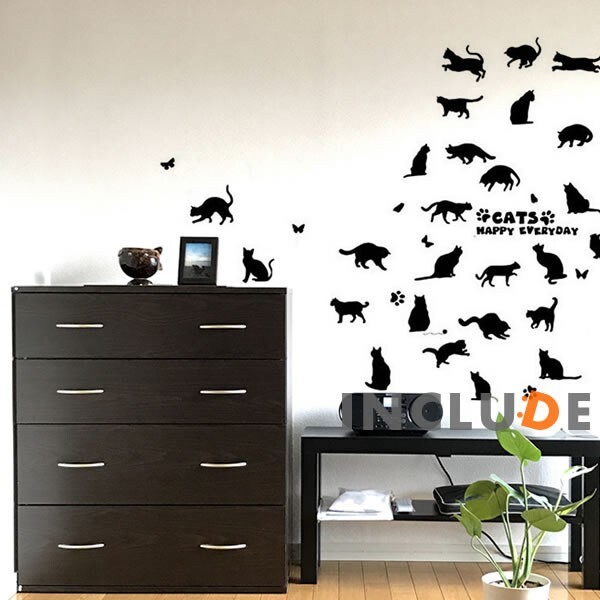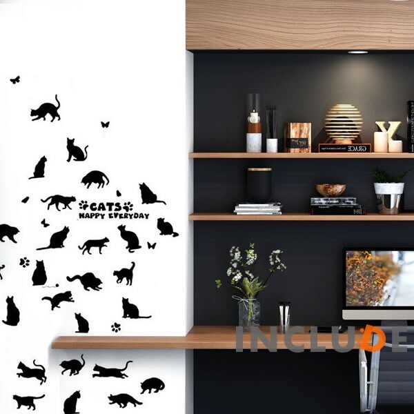 ウォールステッカー 猫 neko ネコ キャット ネコがいっぱい ネコのシルエット 遊んでる猫 じゃれてる猫 ツンデレ