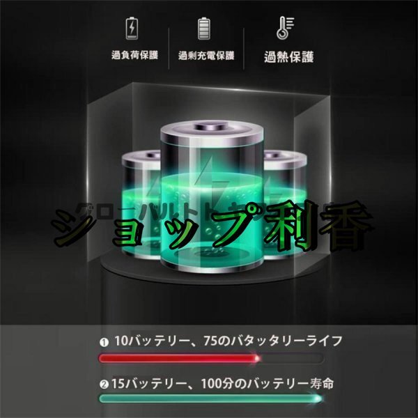 【大容量バッテリー】電池容量 37500mAH、連続使用時間 50min。