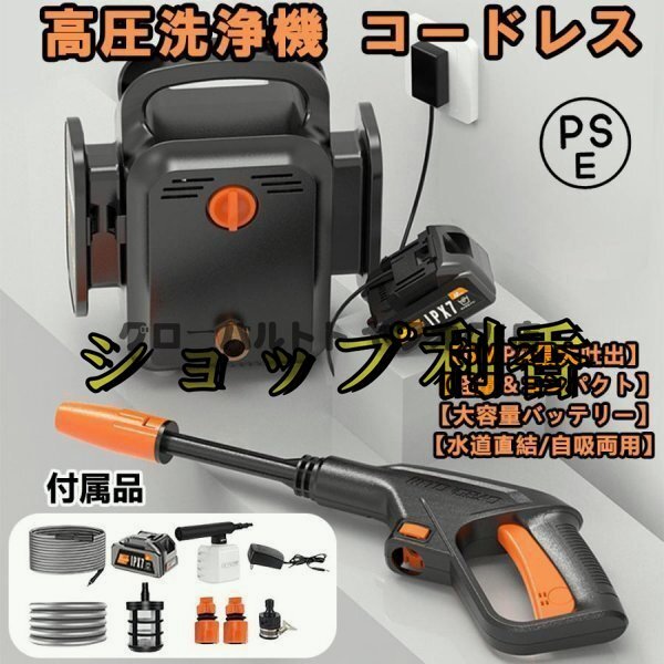 人気推薦高圧洗浄機コードレス充電式マキタ18Vバッテリー互換対応 6.0MPa 強力噴射業務用家庭用水道直結多機能ノズル自吸式電源コードはS95