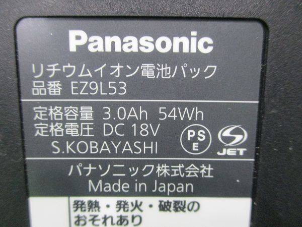 | コメント | ・EZ9L53:バッテリー2コ ・EZ0L81:充電器 中古品のため、ケースは全体的にキズや汚れがあります。 また、商品は全体的に使用感があります。 簡単な動作確認のみで、実際の現場で使うような確認は取れていません。 そのため、実際の現場作業で不具合が生じる恐れがあります。 バッテリーの寿命などはわかりません。 付属品は写真に写っているものがすべてです。 細かく確認をしたい方はご来店下さい。 動作にかかわる返品交換はお受けしておりません。 |