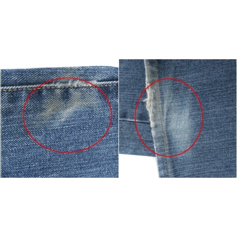 【状態】こちらの商品には下記のようなダメージがあります。 ・両裾にダメージがあります。 ・両裾、左右前ポケット、左右前太ももに数か所薄っすら茶色いシミ汚れがあります。 その他目に付く汚れやダメージはなく、まだまだご愛用いただけるお品です。 ※あくまでも中古品ですので掲載写真や記載内容をご確認いただき、ご理解の上ご購入ください。