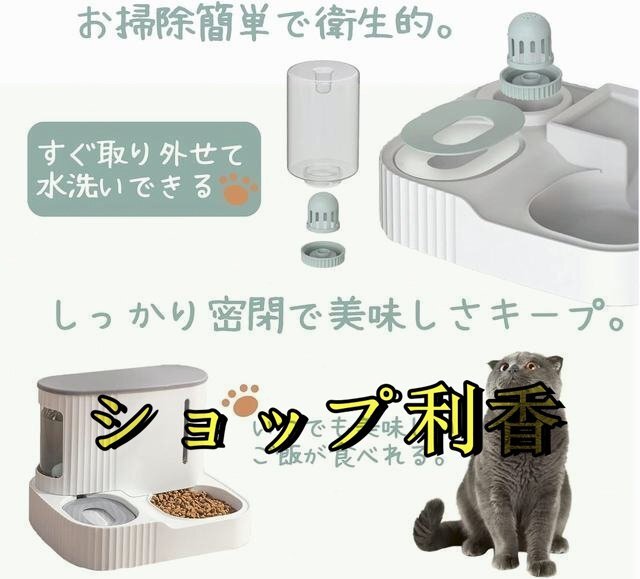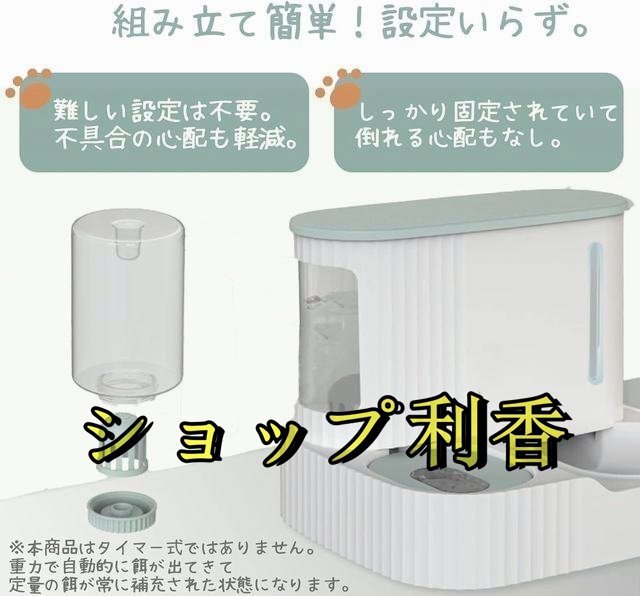【設定不要】:難しい設定をする必要がなく、組み立ても簡単です。届いてすぐお使いいただける商品となっております。(本商品はタイマー式ではありません。重力で常に定量の餌や水が補充された状態になります。) 【大容量のエサ入れ・給水ボトル】:本商品は大容量となっており飼い主の長期不在時もエサの心配をせずにお出かけいただけます。(エサ入れ3L / 給水ボトル0.85L)重力で出てくるため、餌が減った際に自動的に餌を補充してくれます。 【衛生的+抜群の安定性】:取り外しも簡単で、水洗いしていただけます。(本商品はプラスチック製となっております。)給水ボトルとエサ入れは蓋で密閉し、酸化を防ぎます。本商品は倒れにくく、詰まりにくい商品となっているため、ペットが倒してしまう心配や、餌が溢れる心配がありません。 ご注意:餌が重力で減った分すぐ落ちてきます、時間や量を調節する事は出来ません。 ご注意:乾燥餌、小粒の餌が使えますが、大きい粒の餌とどろどろの餌が落ちにくくて,使わないてください。