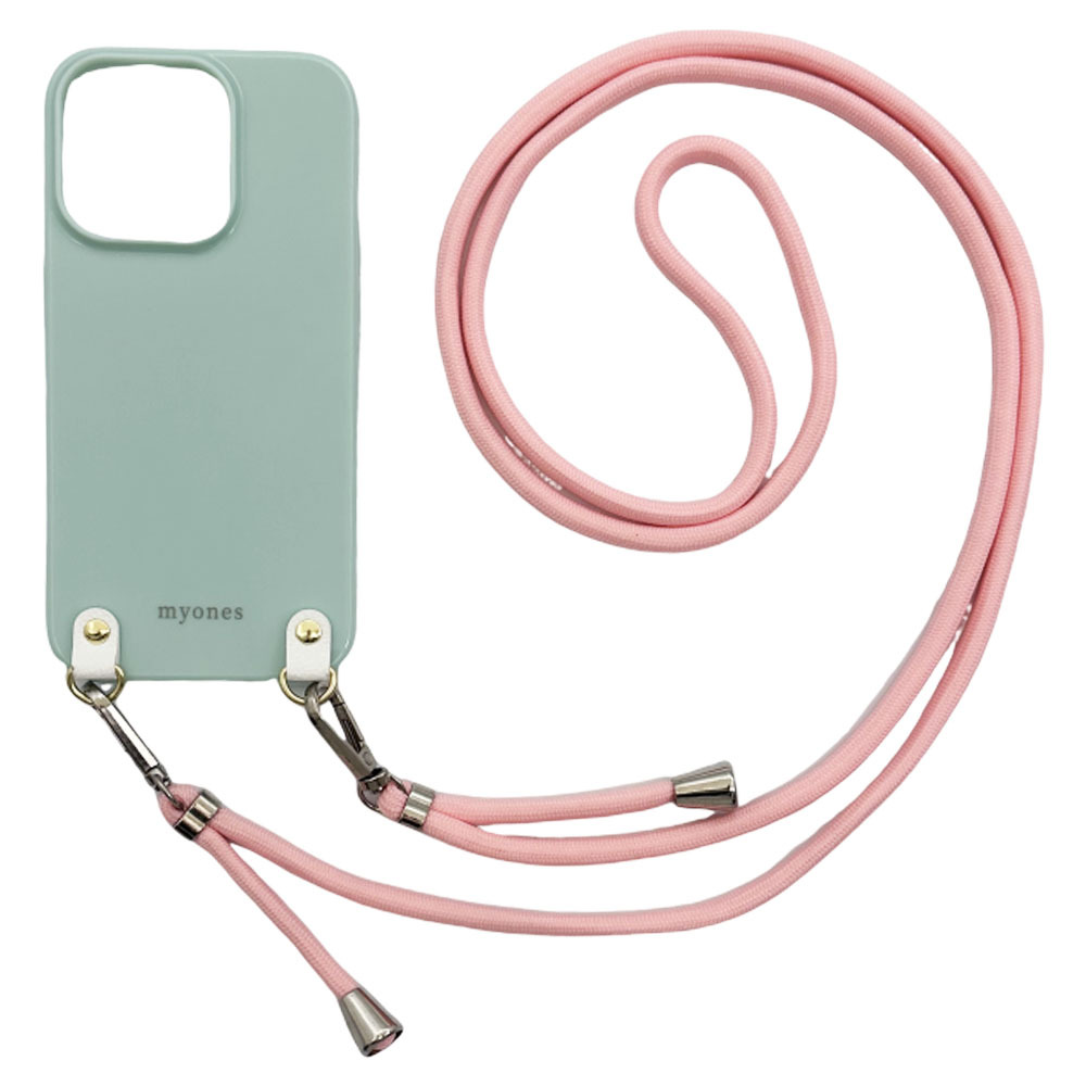 Xperia 5 IV SO-54C SOG09(くすみグリーン/ピンク)ひも TPU ストラップ 肩掛け 首かけ 斜めが スマホケース かわいい