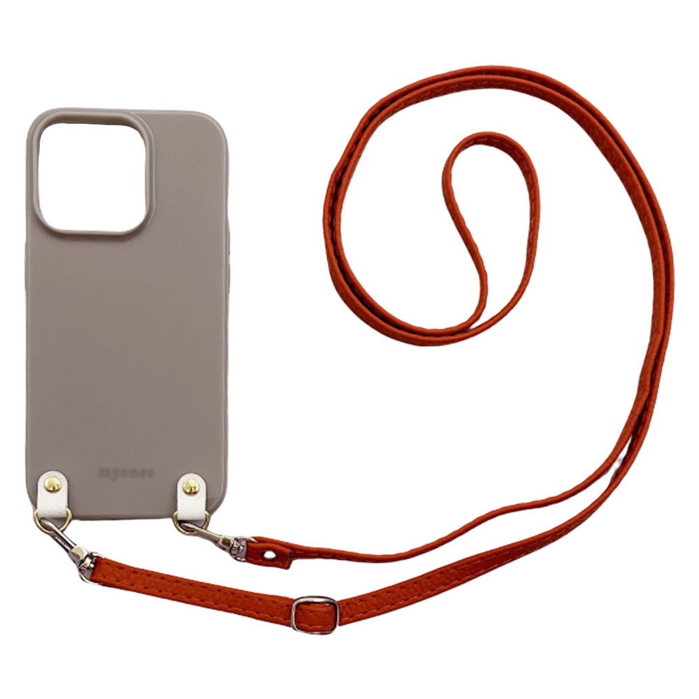 AQUOS sense6 SH-54B SHG05(くすみグレー/オレンジ)PUレザー ソフトケース スマホショルダー 肩掛け 首かけ 斜めがけ かわいい 韓国