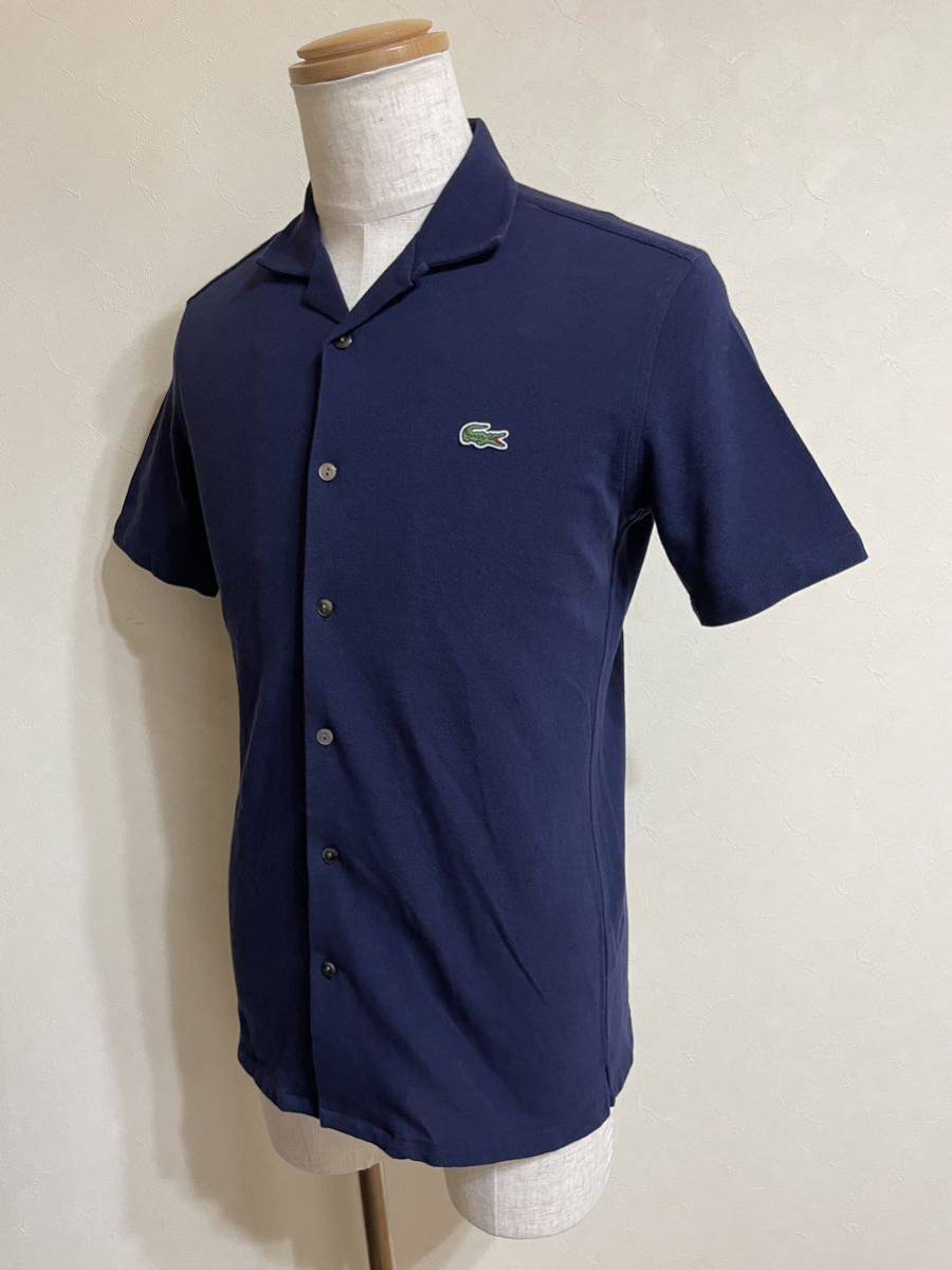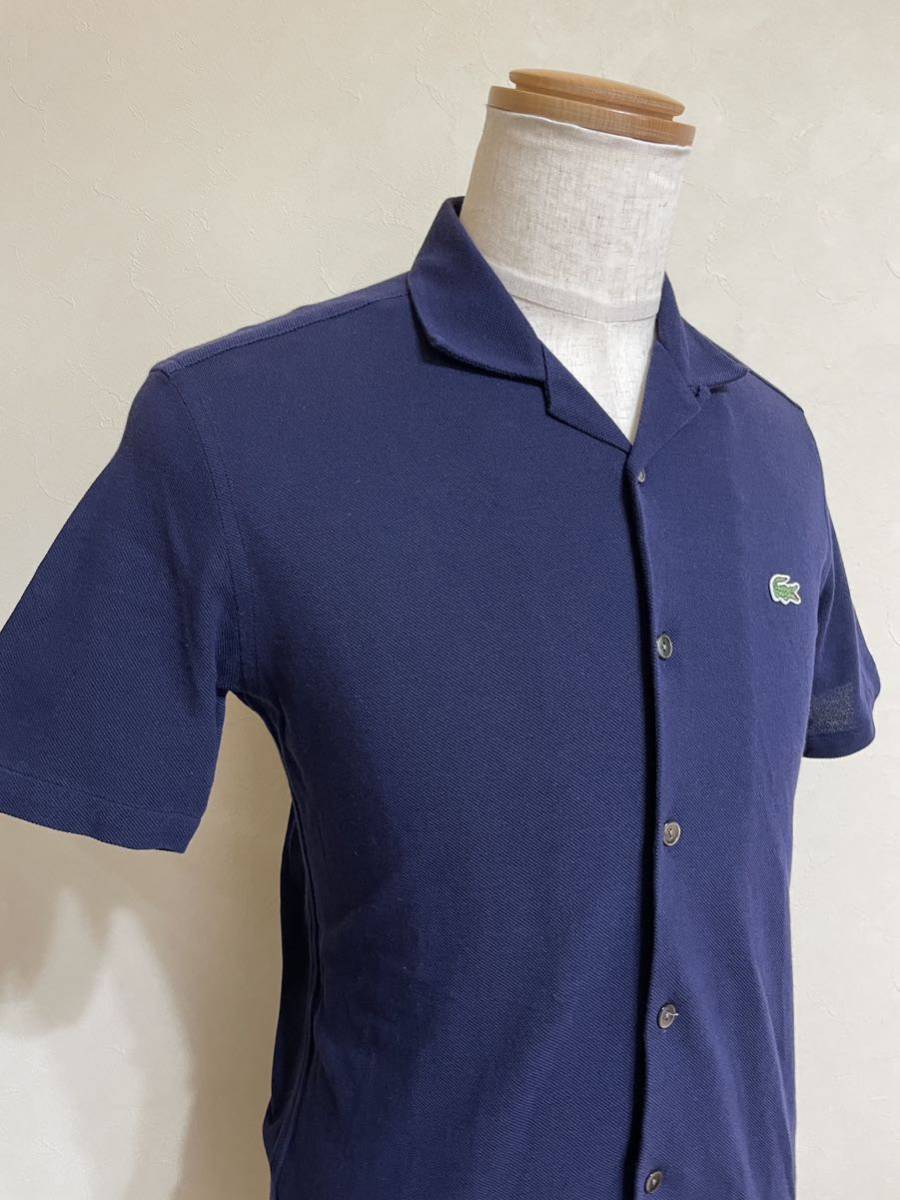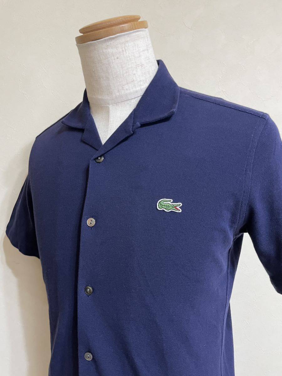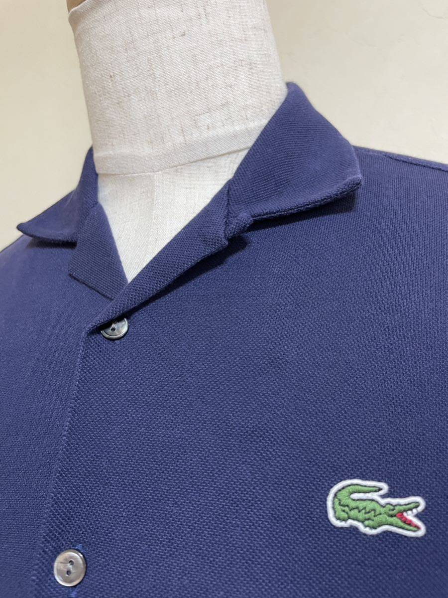 【美品】 LACOSTE ラコステ× EDIFICE 別注 限定 鹿の子 開襟シャツ トップス サイズ3 半袖 ネイビー PH207P クラシックフィット