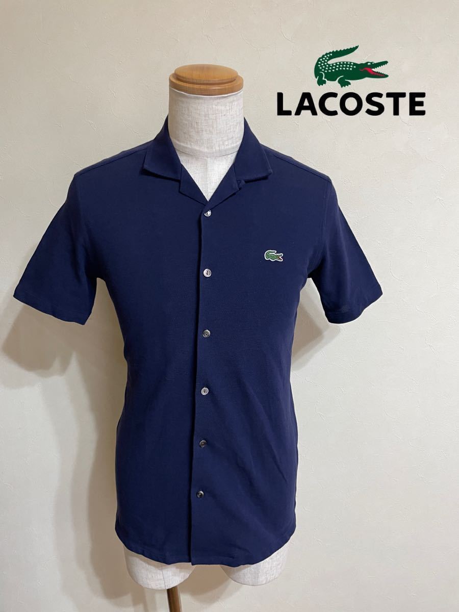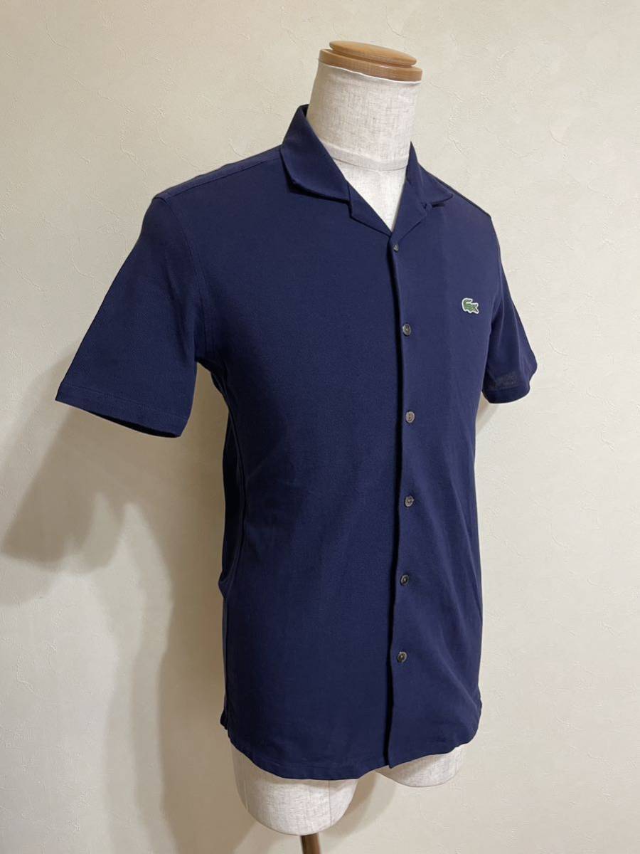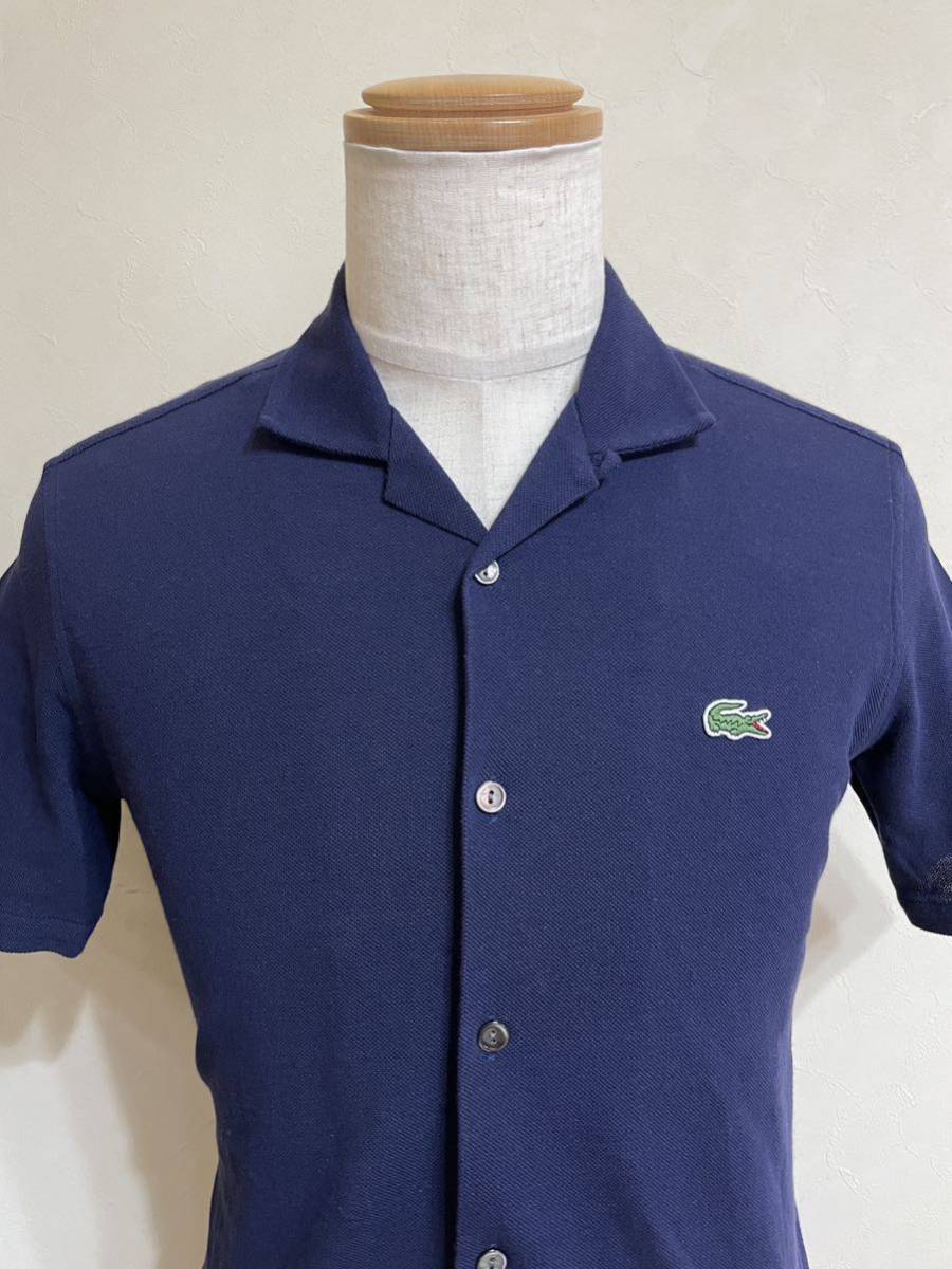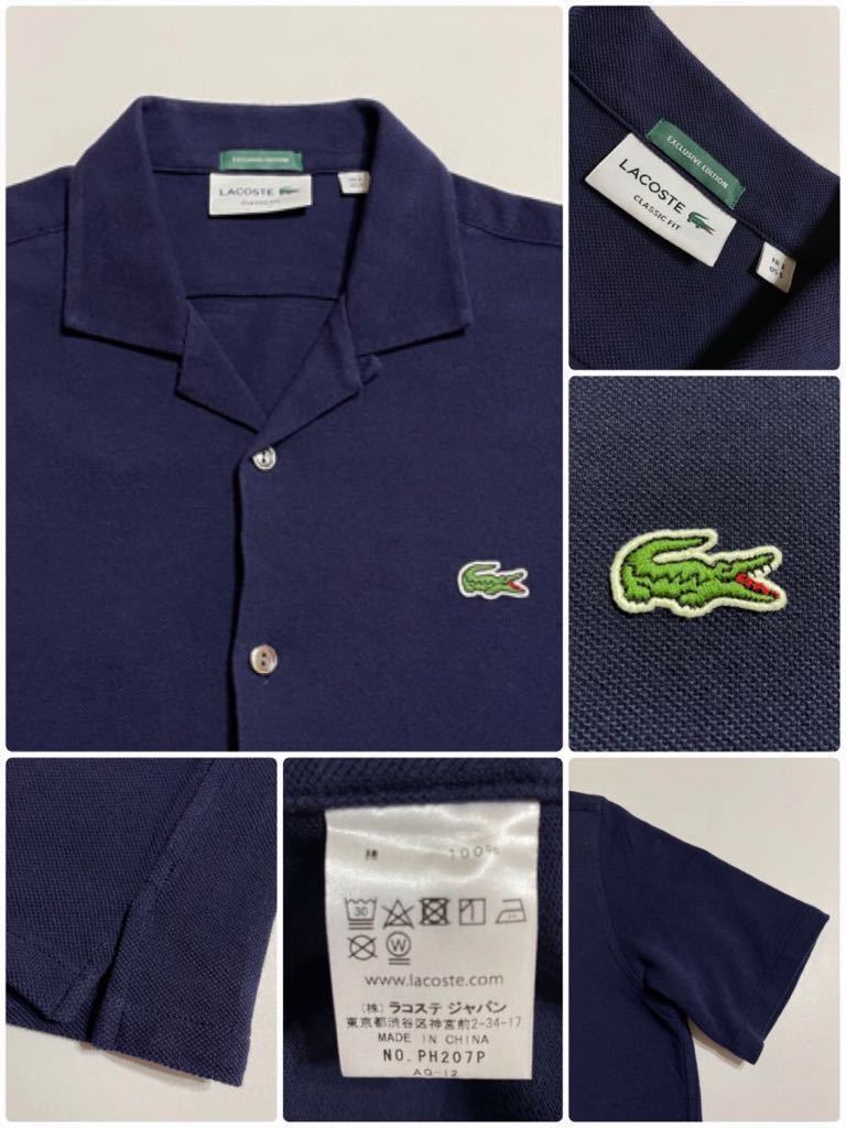 【美品】 LACOSTE ラコステ× EDIFICE 別注 限定 鹿の子 開襟シャツ トップス サイズ3 半袖 ネイビー PH207P クラシックフィット