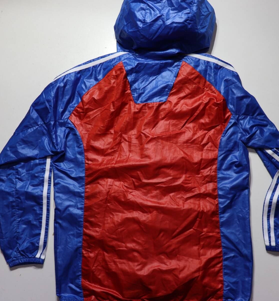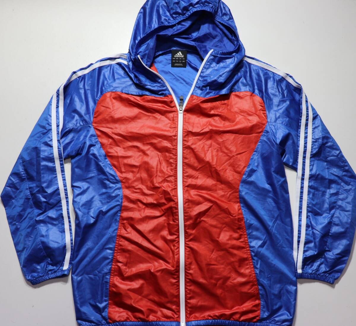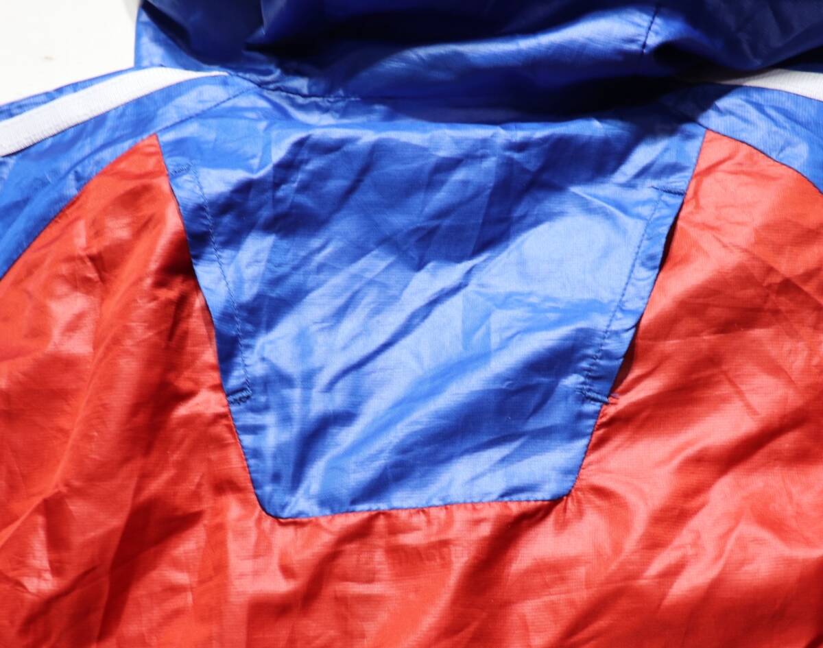 アディダスのジップアップのナイロンパーカーです。▲色はブルー×赤で素材はポリエステル100%です。▲程度:USEDですが破れやダメージになるような汚れ等はありません。古着を理解していただける方の入札を希望いたします。▲サイズ:Lで実寸では肩幅:ラグランスリープで首の中央から袖口までは80センチ、着丈70センチ、身幅;58センチです。▲他にも多数出品していますので、一度ご覧ください。