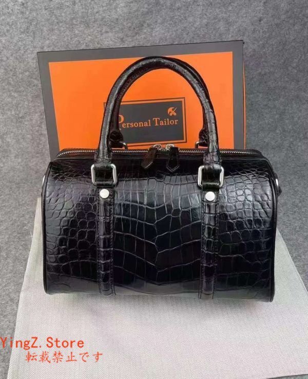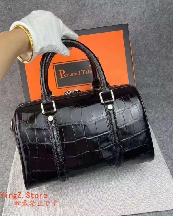 半艶付き クロコダイルレザー ワニ革 レディースバッグ ボストンバッグ 斜め掛け ハンドバッグ ミニバッグ ショルダーバッグ 通勤旅行