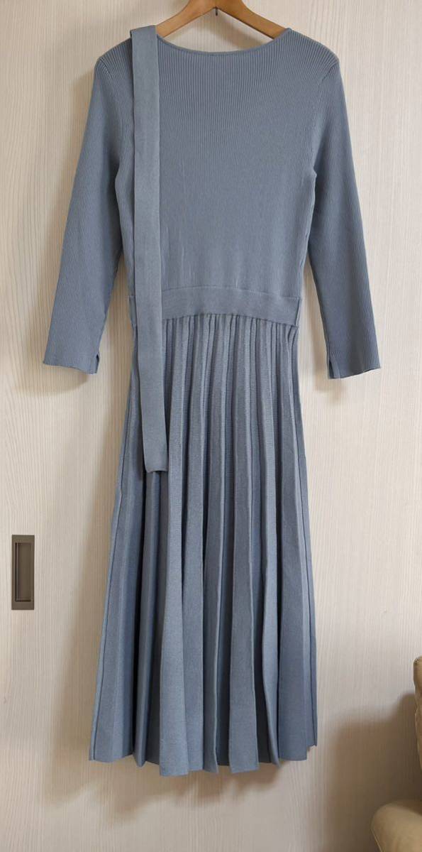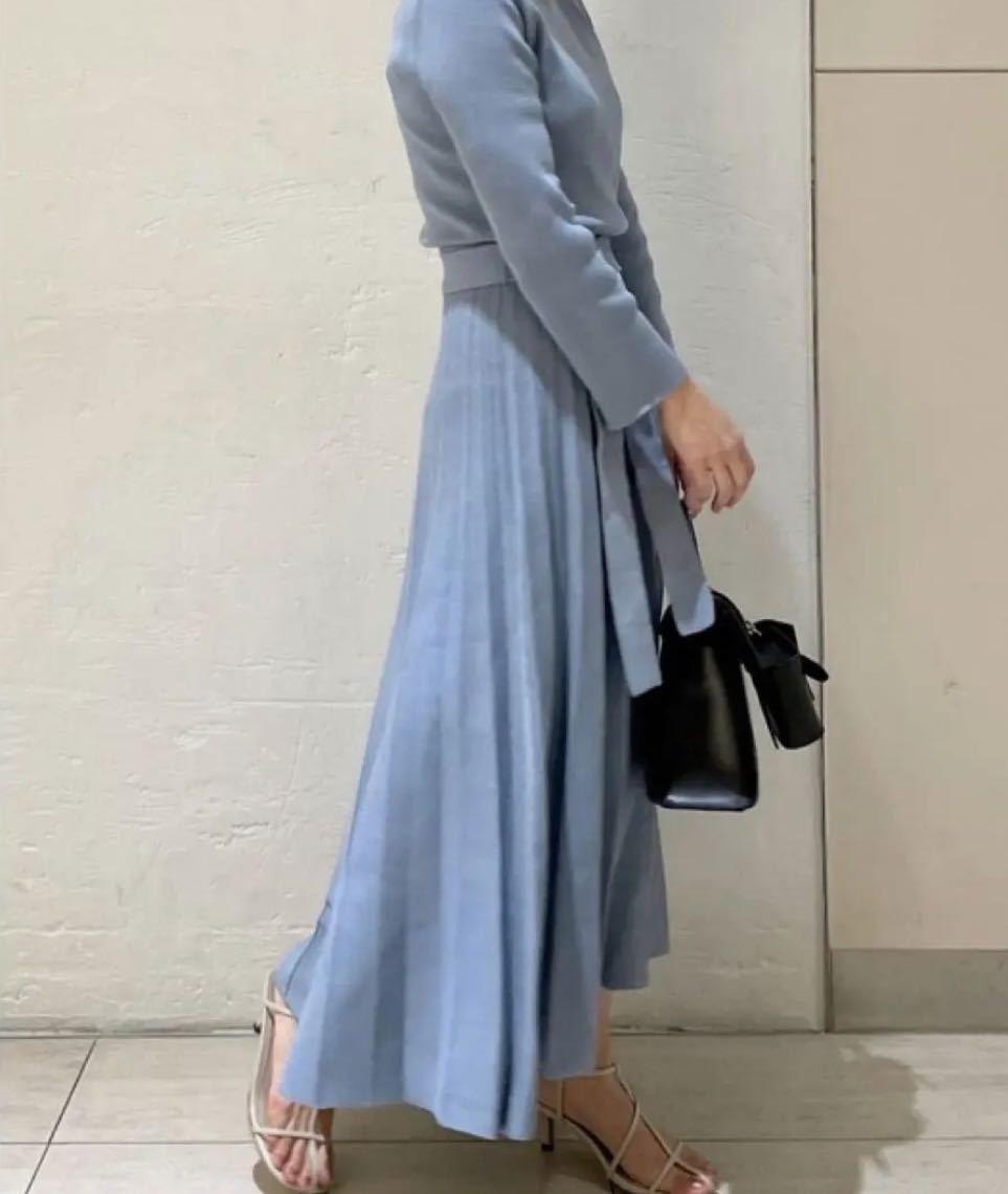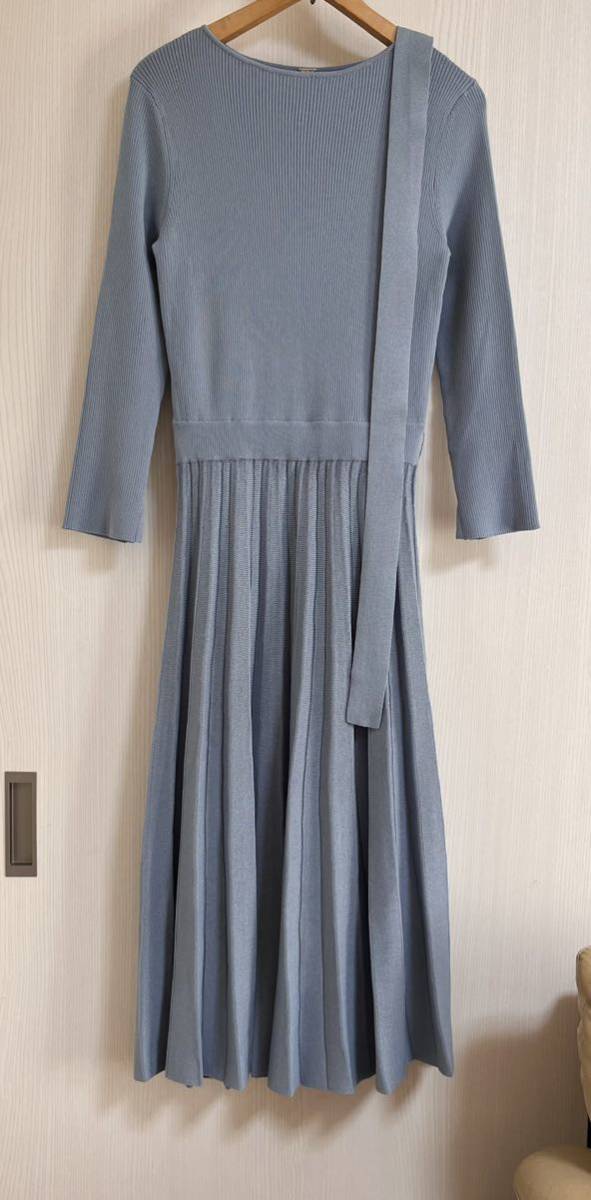 七分袖リブニットプリーツワンピース