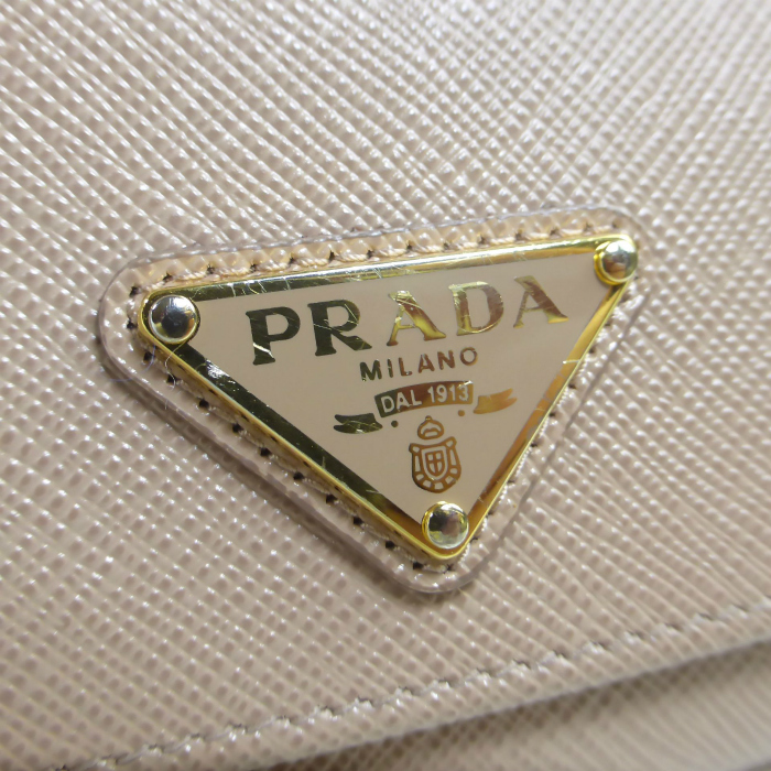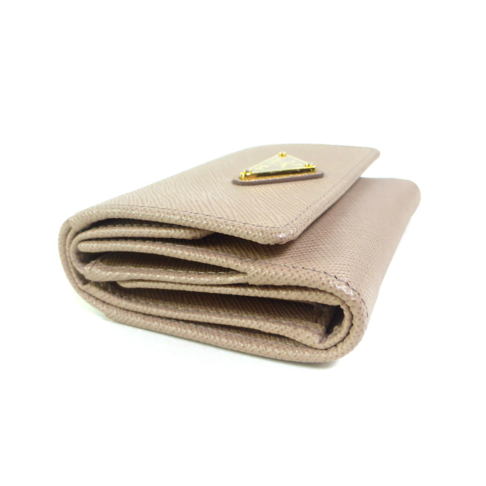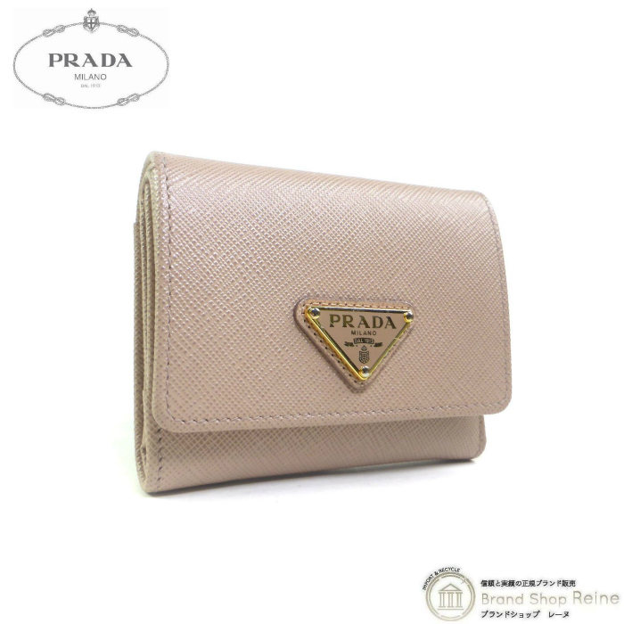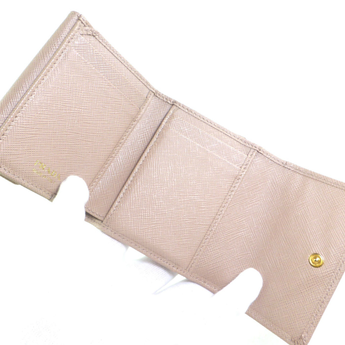 | プラダ(PRADA) サフィアーノ トライアングルロゴ コンパクト 三つ折り 財布 1MH043 ピンクベージュ(中古) |
