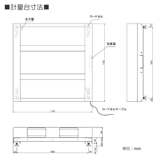 | 1100mm×1100mmの大型計量台 フォークリフトで簡単に運搬可能(パレット一体型) 倉庫など暗所でも見易い蛍光表示管 |