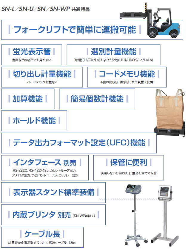 | 低床タイプ SN-1200KL-K ひょう量 1200kg (取引・証明用[検定付き]) | |||