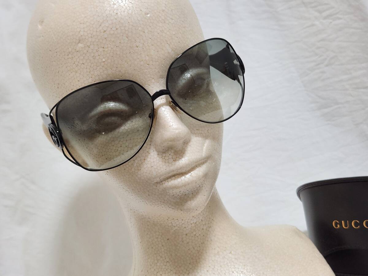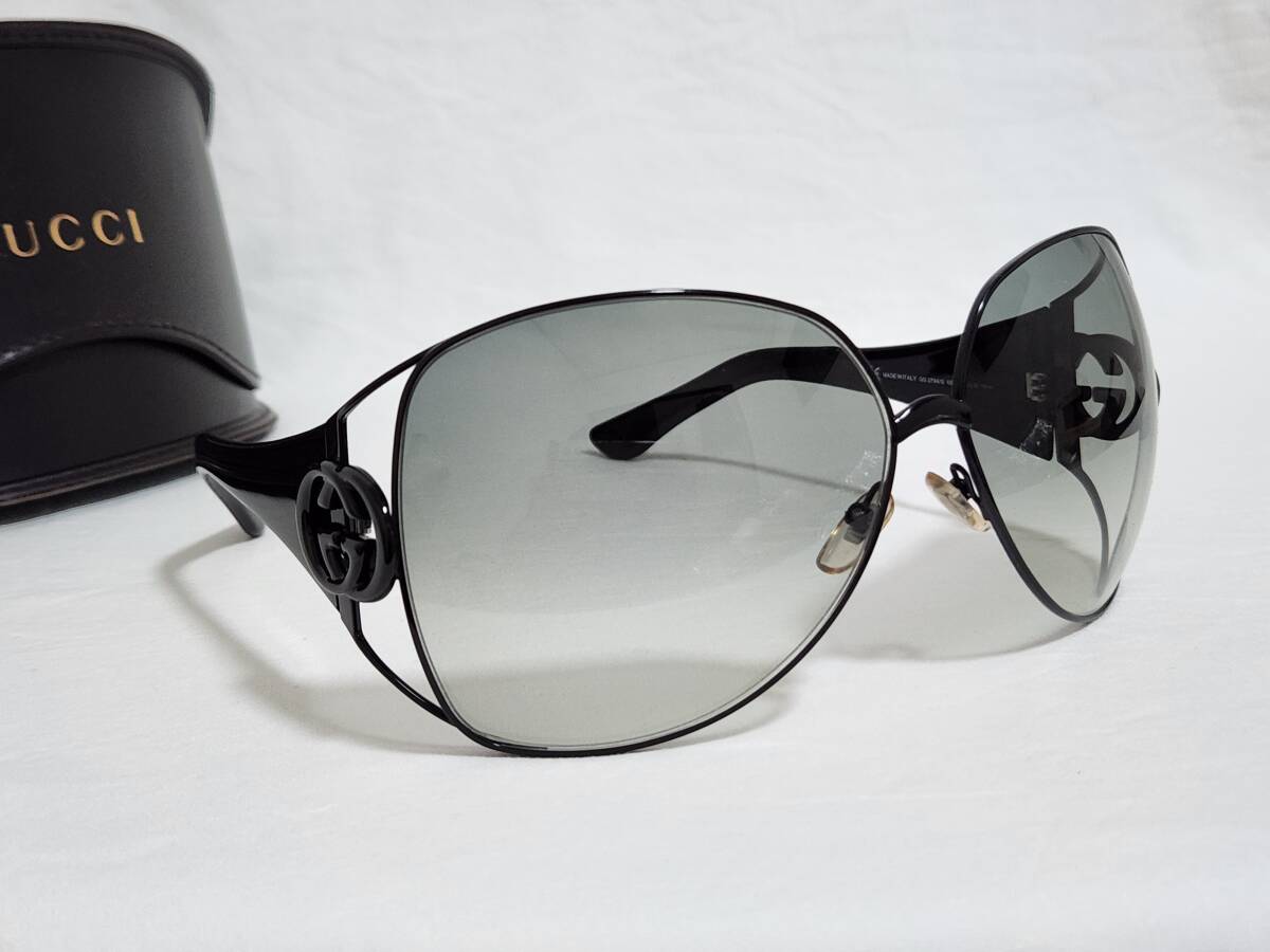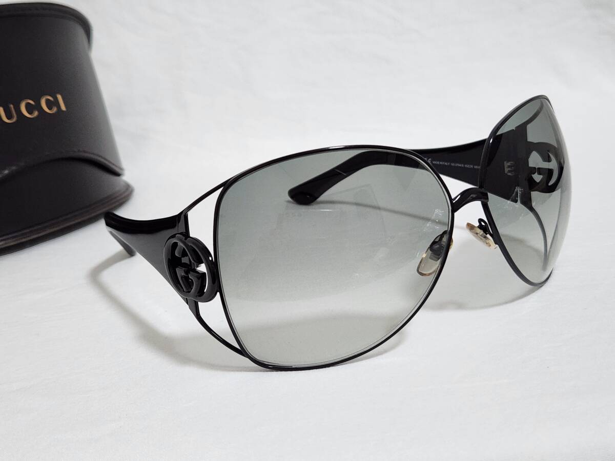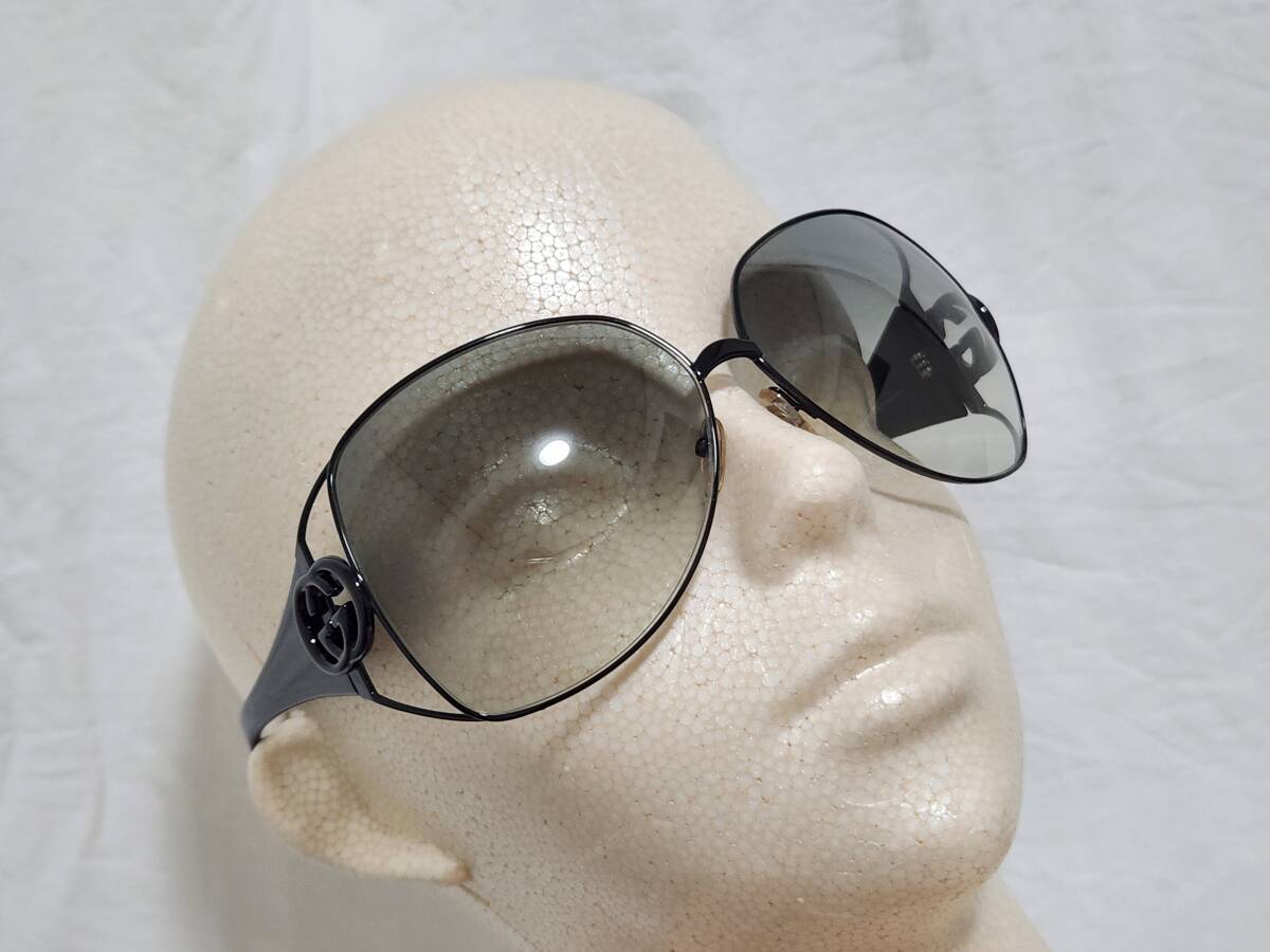 正規レア GUCCIグッチ GG オープンロゴ メタルコンビサングラス 黒 グラマラスビッグレンズ シャイニーメタリックコンビアイウェア 付属有