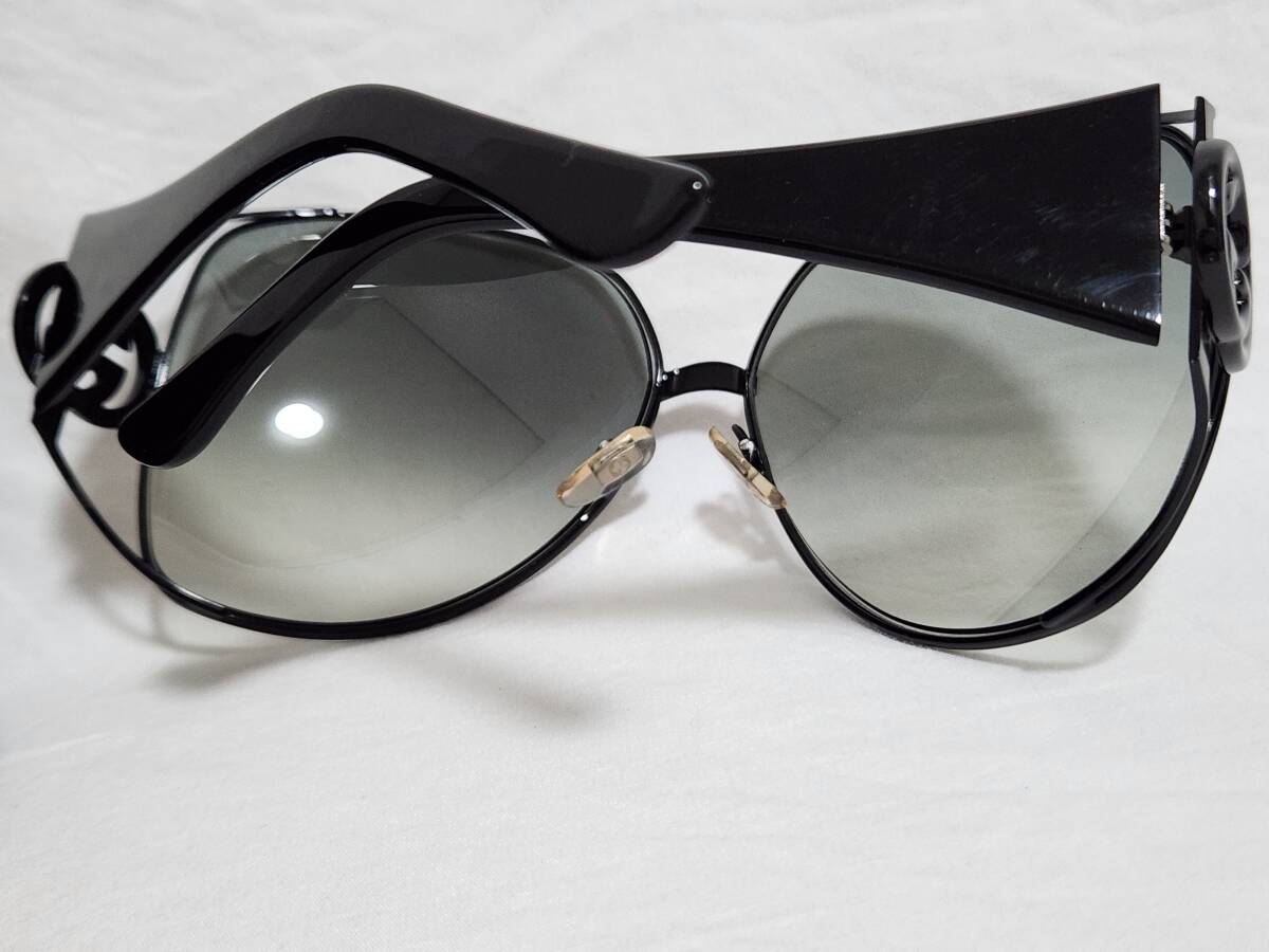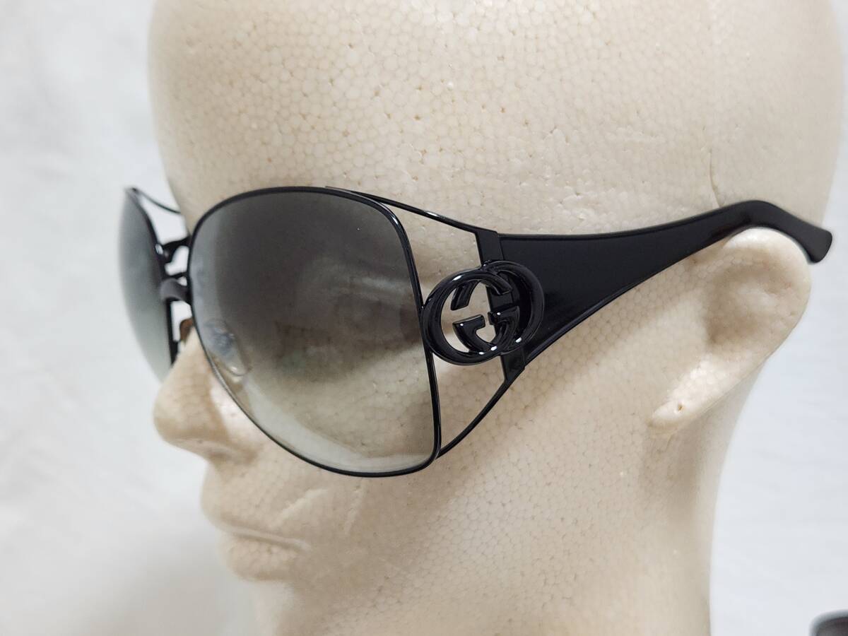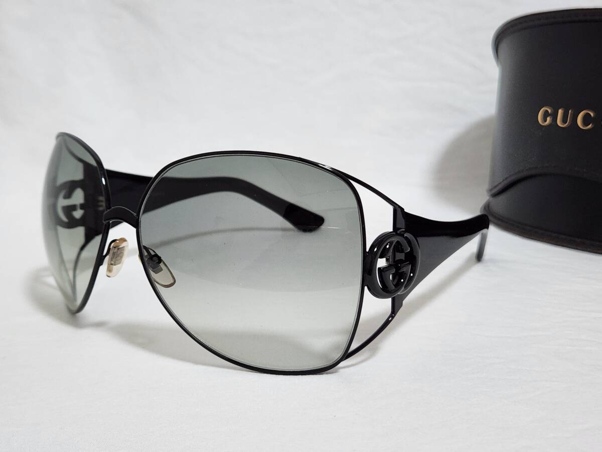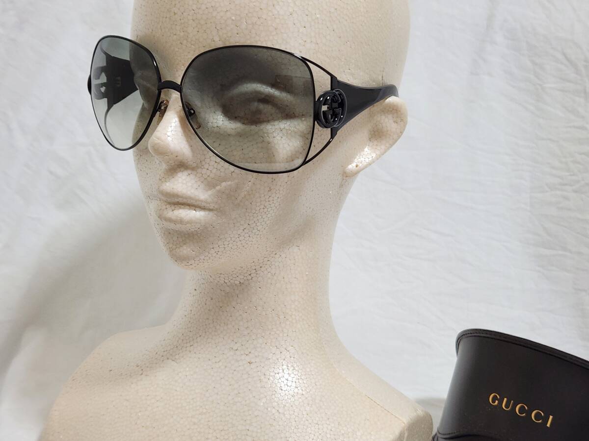 正規レア GUCCIグッチ GG オープンロゴ メタルコンビサングラス 黒 グラマラスビッグレンズ シャイニーメタリックコンビアイウェア 付属有