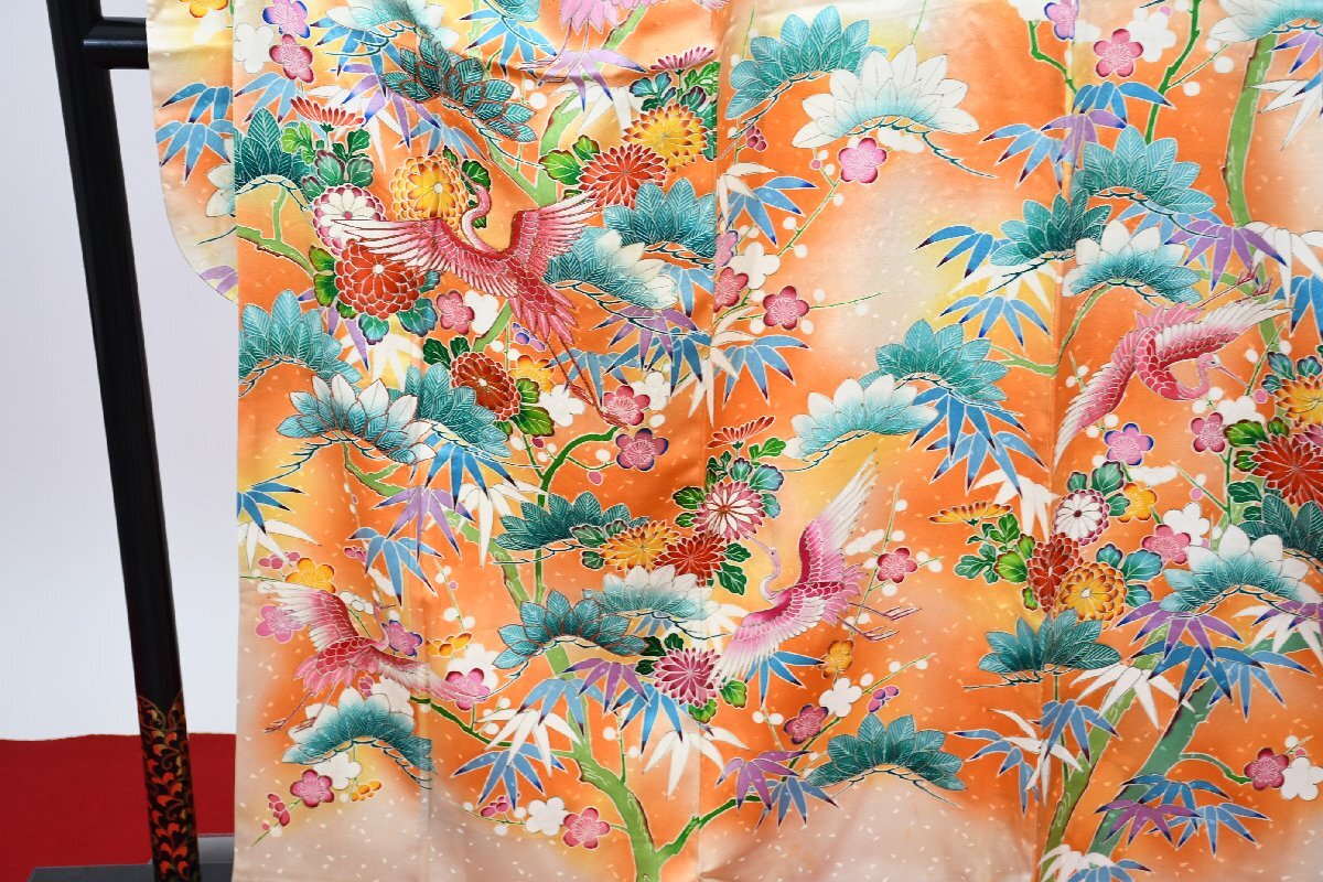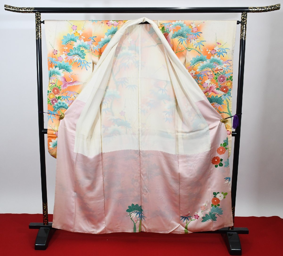 サイズ | ▼身丈 (背中から) 153cm ▼裄丈 66cm ▼袖丈 100cm ▼後巾 30.5cm ▼前巾 25cm |