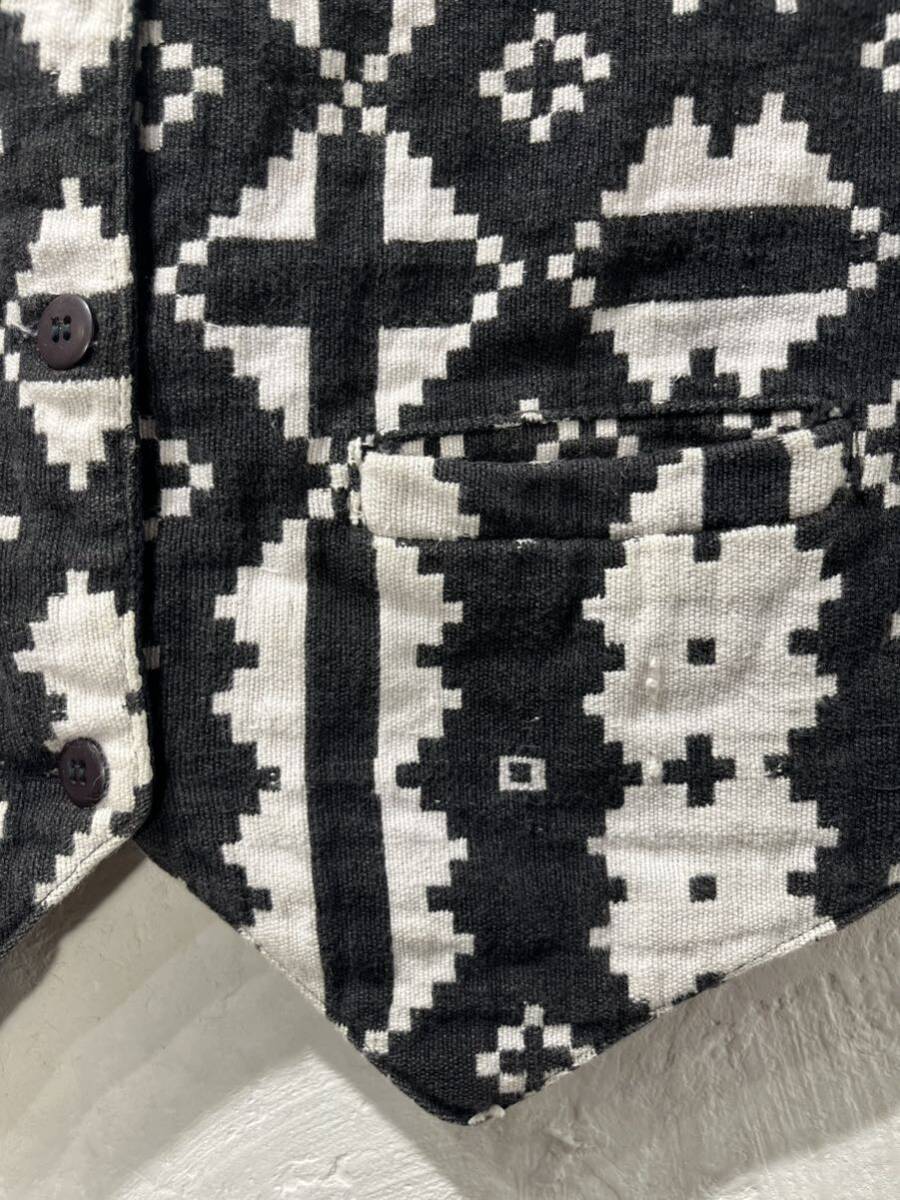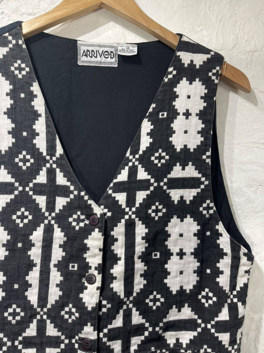 送料¥185 80'sビンテージARRIVEDモノトーントライバルパターン総柄ベストMコットン