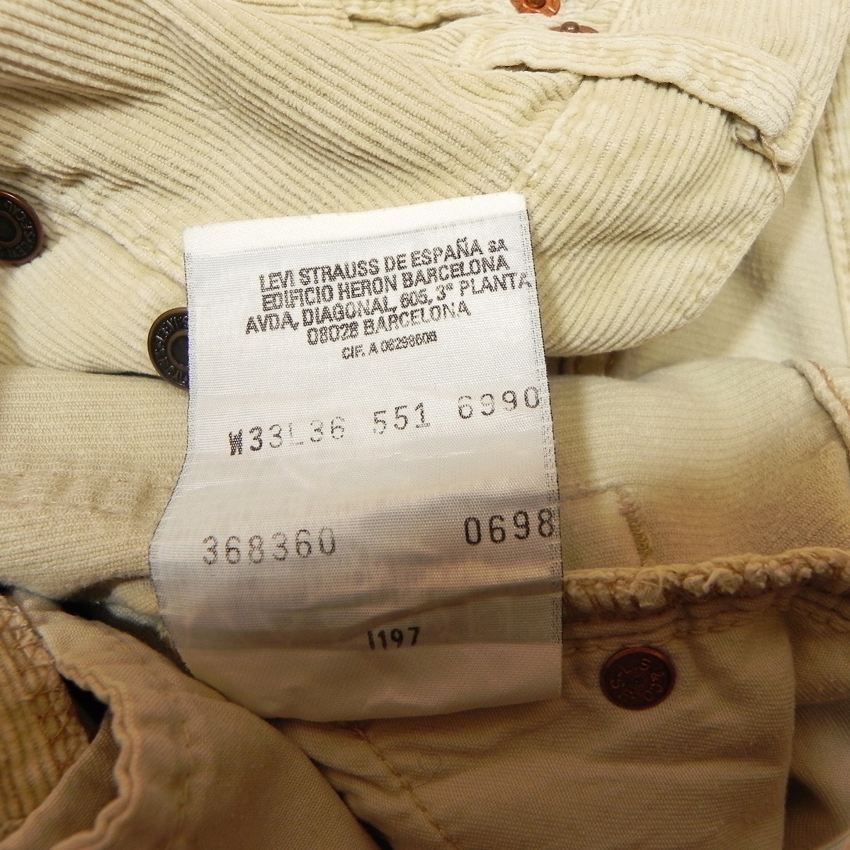 -539《激レア》希少! 90s vintage Levi's 551 ボタンフライ コーデュロイ パンツ 33 白タブ ユーロ ビンテージ ヴィンテージ ★
