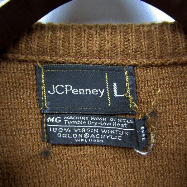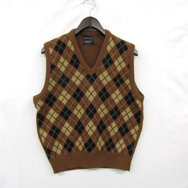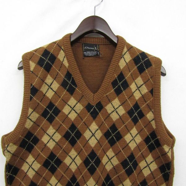サイズ L JCPenney Vネック ニット ベスト ジレ アーガイル柄 ブラウン ジェイシーペニー 古着 ビンテージ 4A2309