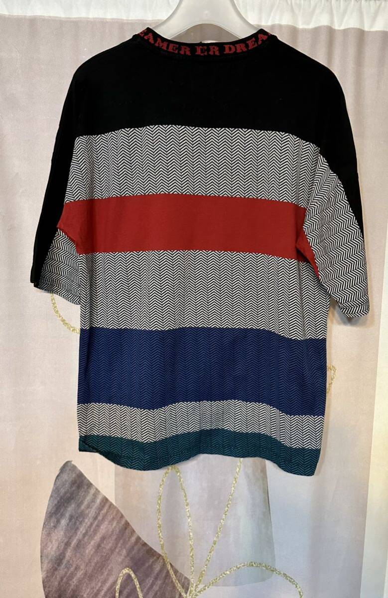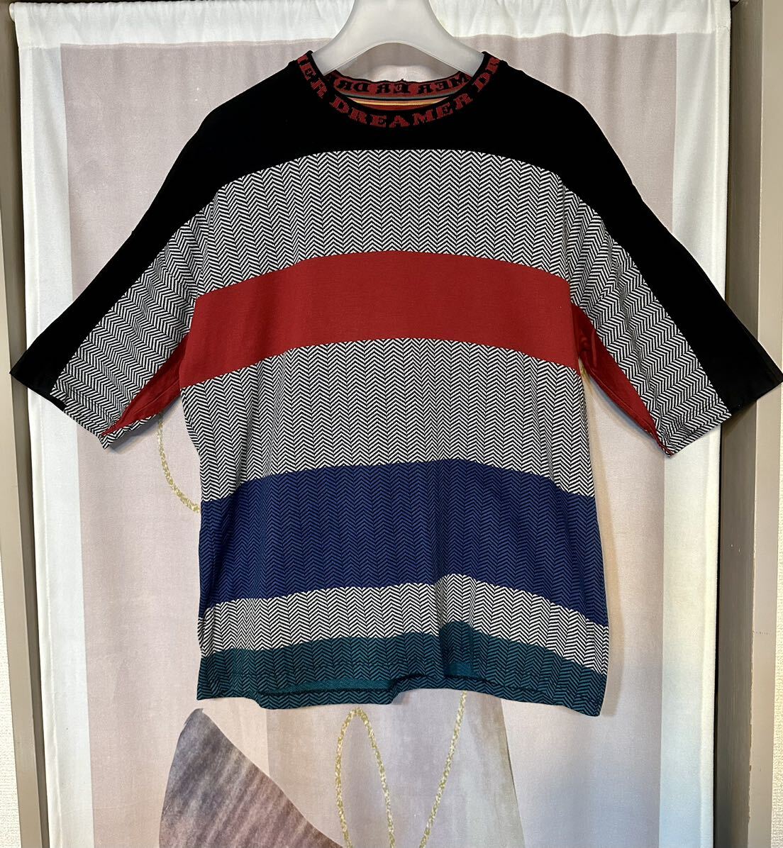 ・異なるカラーのコントラストボーダーをミックスアップさせたクルーネックボーダーカットソー。