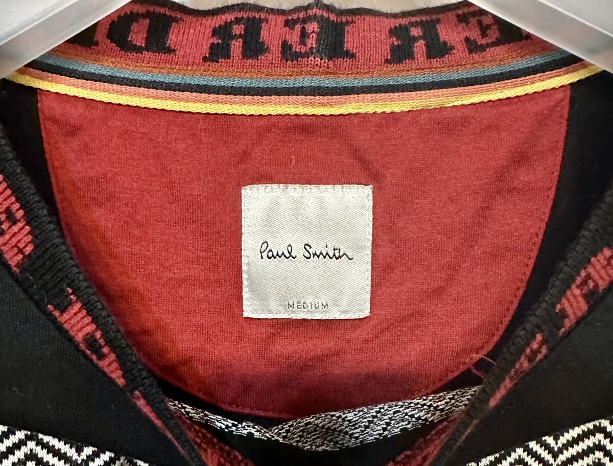 クラシックなヘリンボーン柄と、ポール・スミスらしいコントラストボーダーがアクセントとなり、上品なコーディネートを演出します。