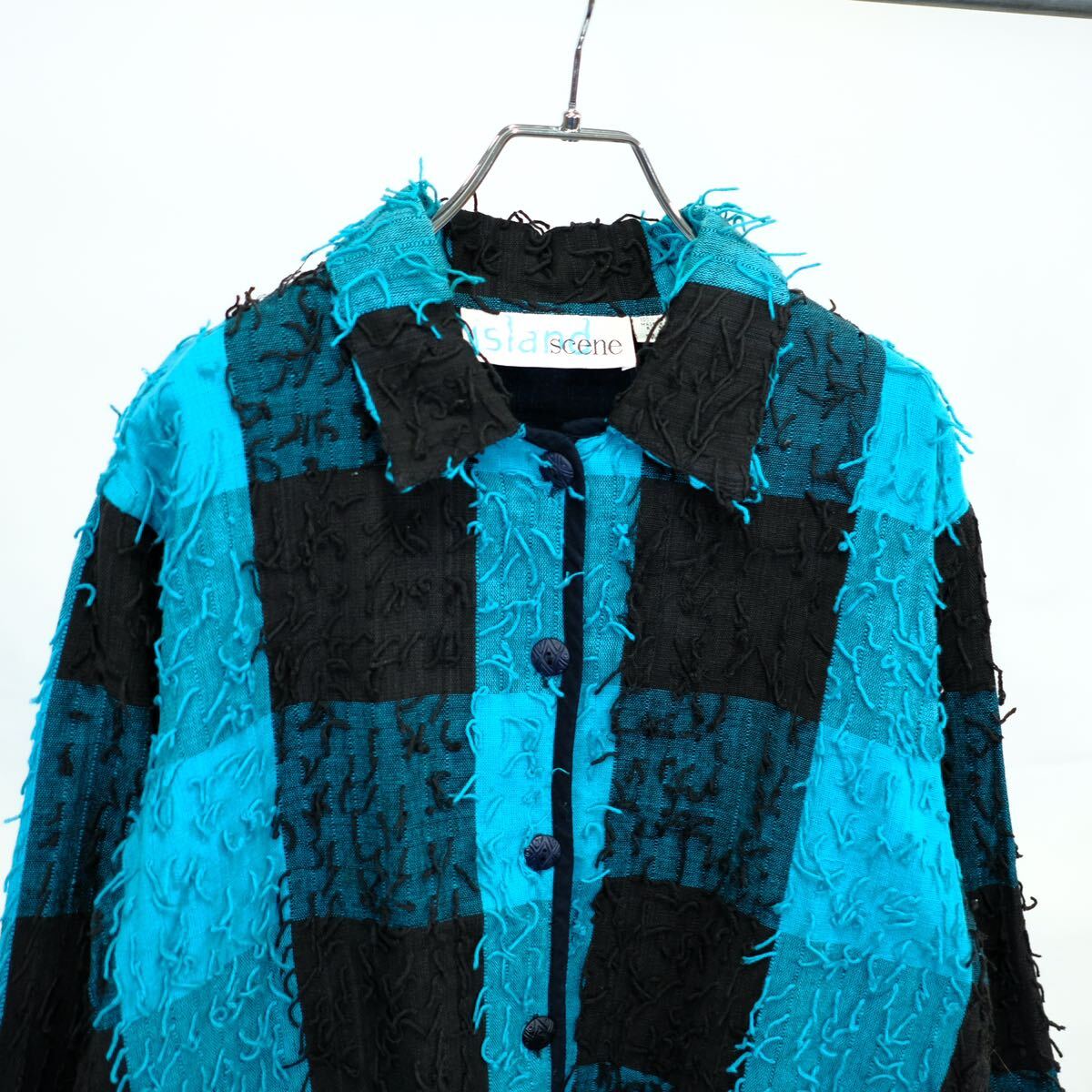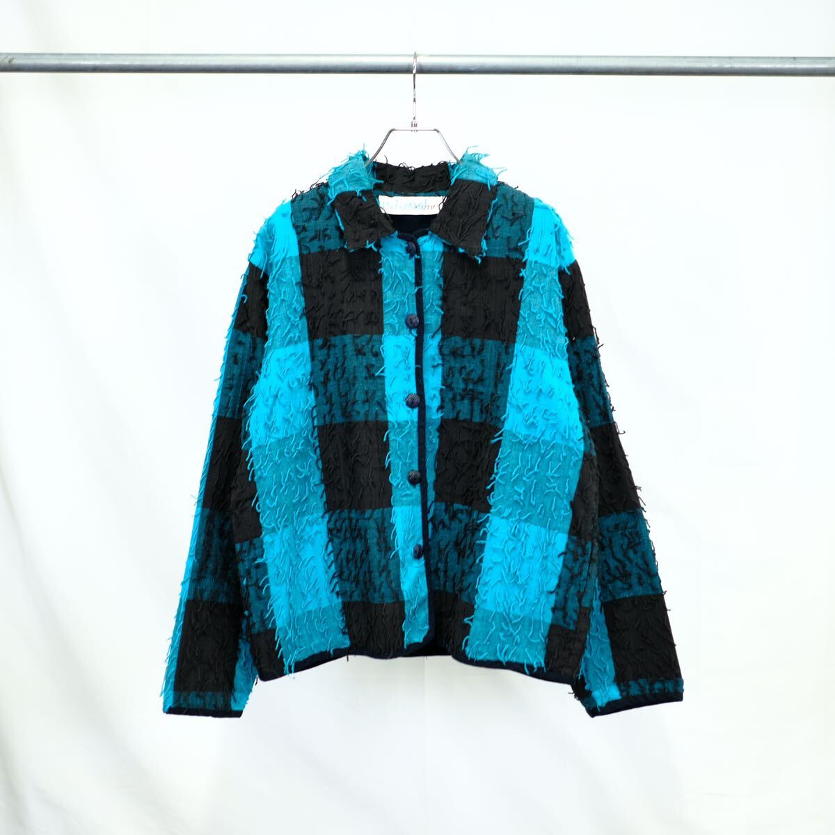 アート性の高いファブリックが使用されたもので、ややゆったり着用いただけるサイズです。