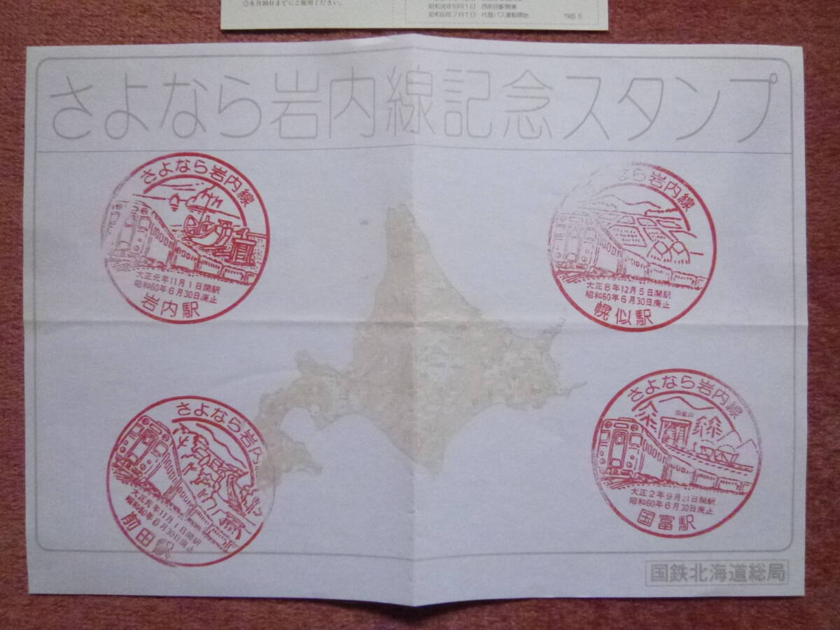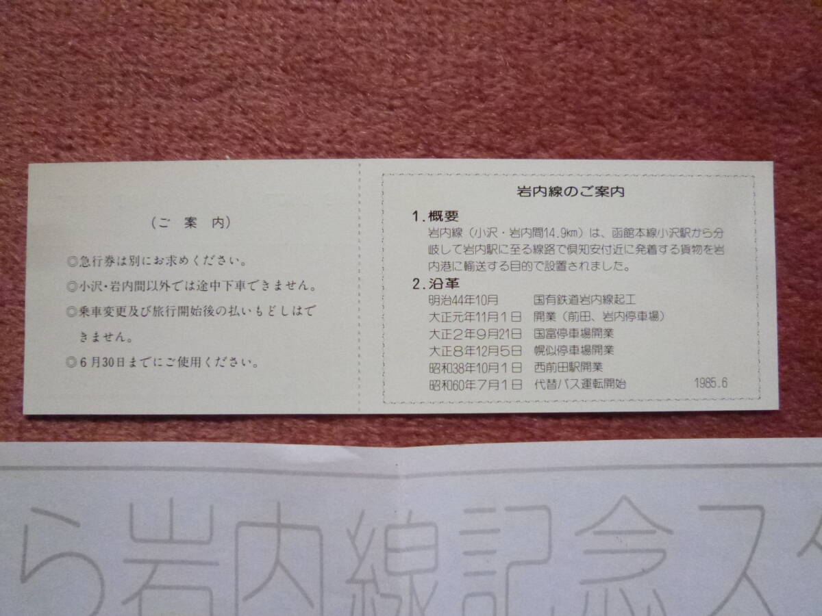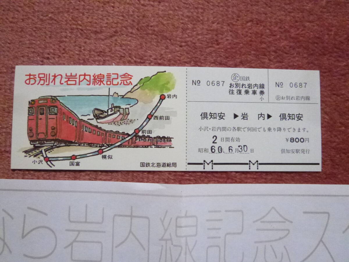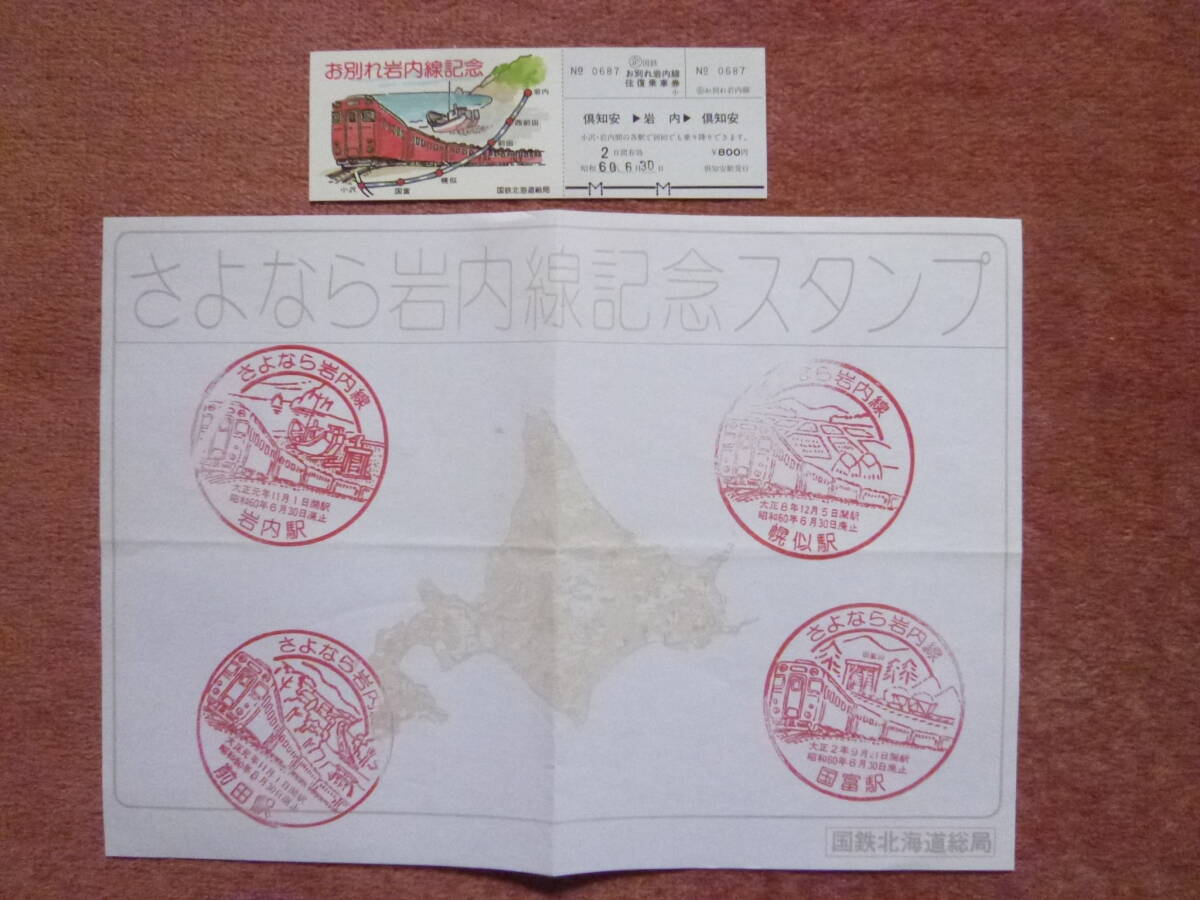 国鉄さよなら岩内線記念・お別れ岩内線往復乗車券とさよなら記念スタンプのセットです。