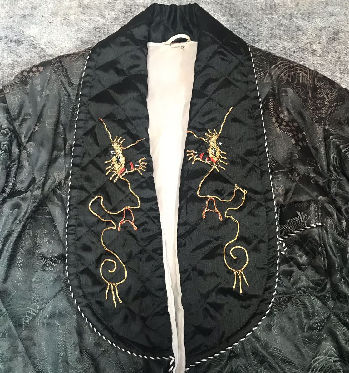 この年代のアイテムで全体に動物柄&風景画且つ襟に昇り龍の刺繍が施された物は目にした事が無い超稀少種の1枚です。