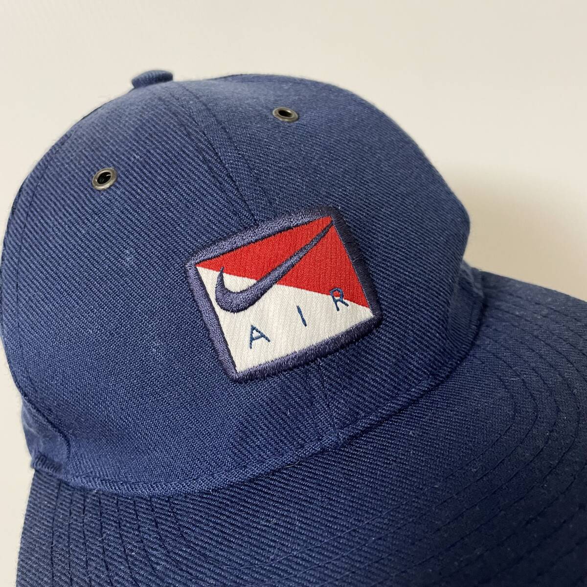 90s NIKE AIR ナイキ 6パネルキャップ ネイビー ネイビー つば裏グリーン フリーサイズ H60407