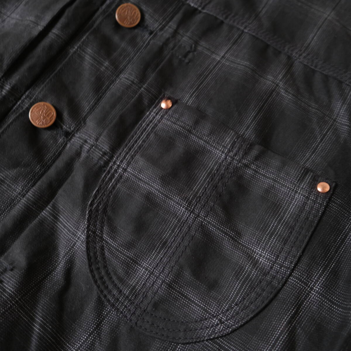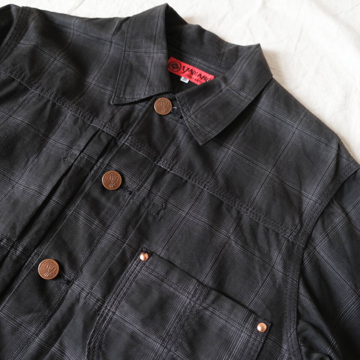 【 YAMANE 】ヤマネ 1ST TYPE シャドーチェック トラッカー ジャケット / 38 / ブラック 黒白 / Gジャン エビス EVISU ジージャン 日本製