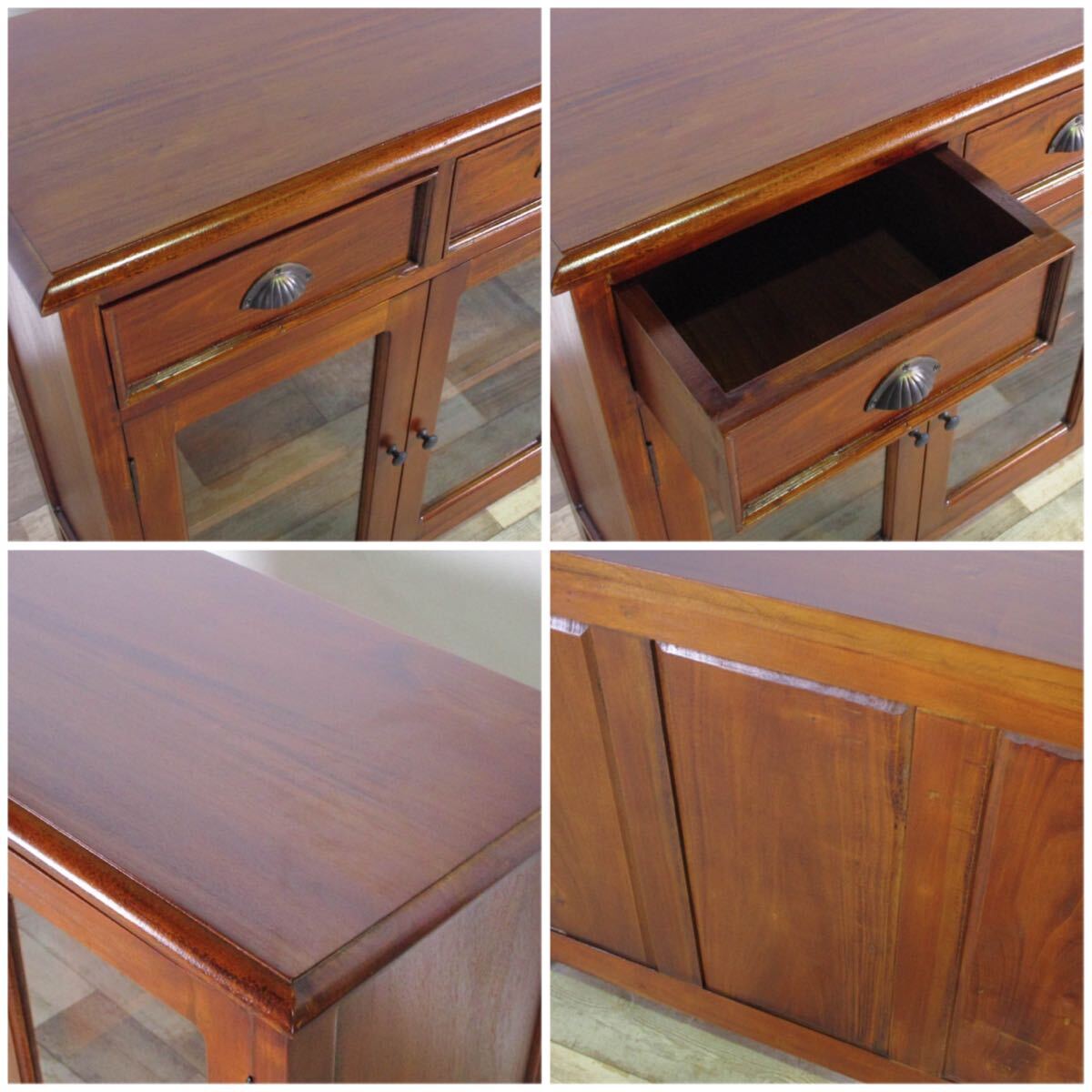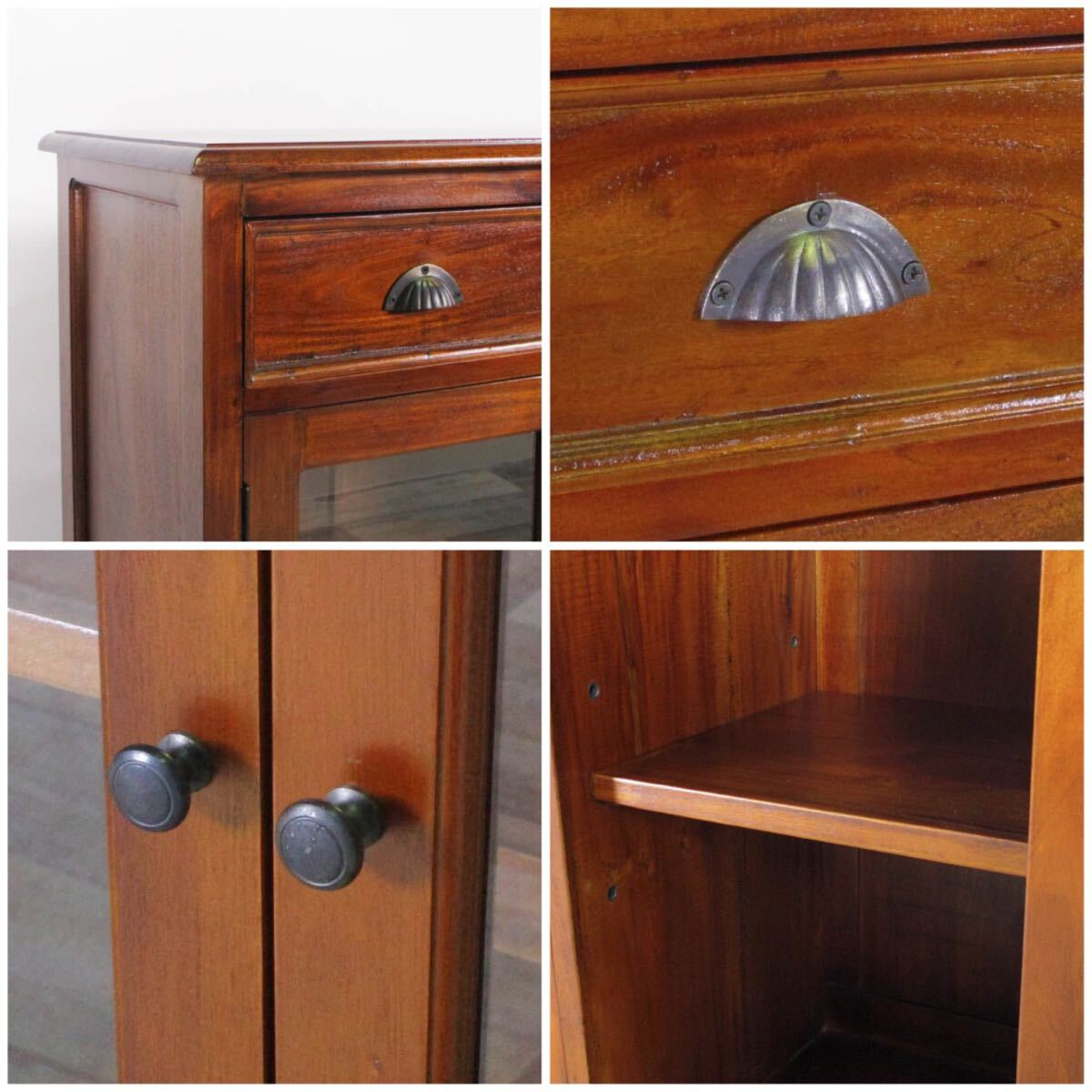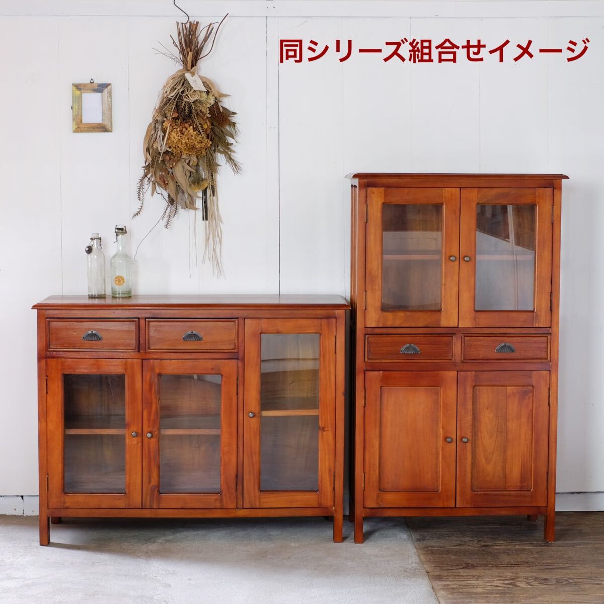 新品 アジアン ガラス キャビネット サイドボード リビング収納 バリ アジア アンティーク ビンテージ カントリー 本棚 食器棚 飾り棚