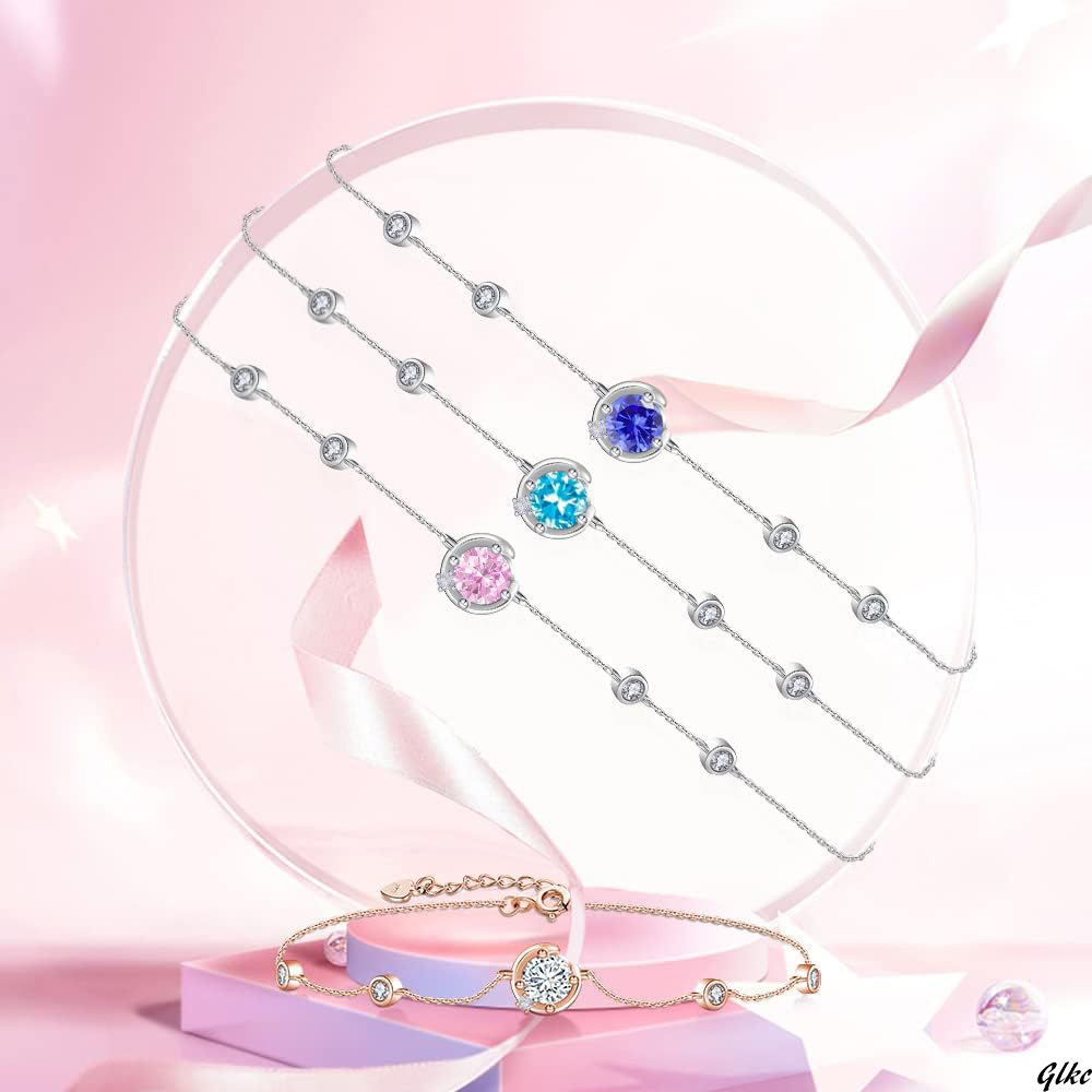 【三日月型のデザインと美しい誕生石がエレガントなブレスレット】 レディース 上質ジルコニア ブレスレット 18K コーティング