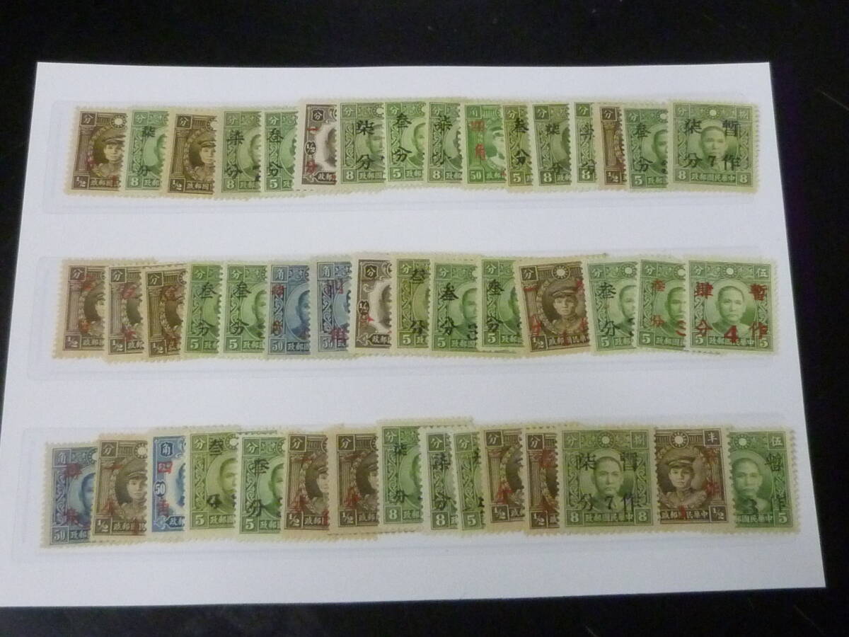 24L A №I 旧中国切手 1940-1942年 各種 暫作四分・暫作三分・暫作七分・改作一分・改作四角 計45種 未使用NH~OH・VF