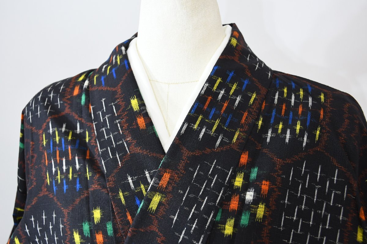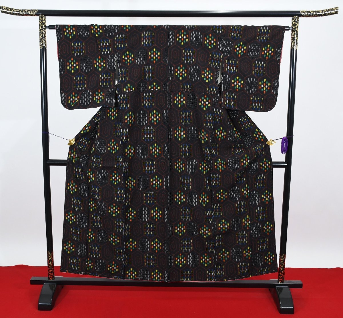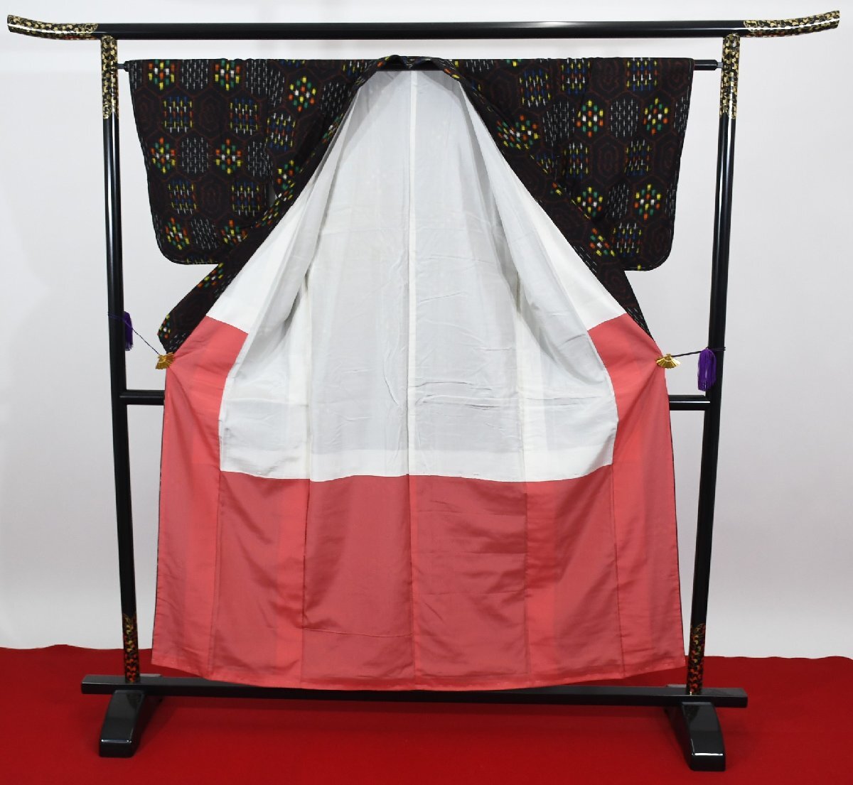 サイズ | ▼身丈 (背中から) 149.5cm ▼裄丈 64cm ▼袖丈 49cm ▼後巾 29cm ▼前巾 23cm |