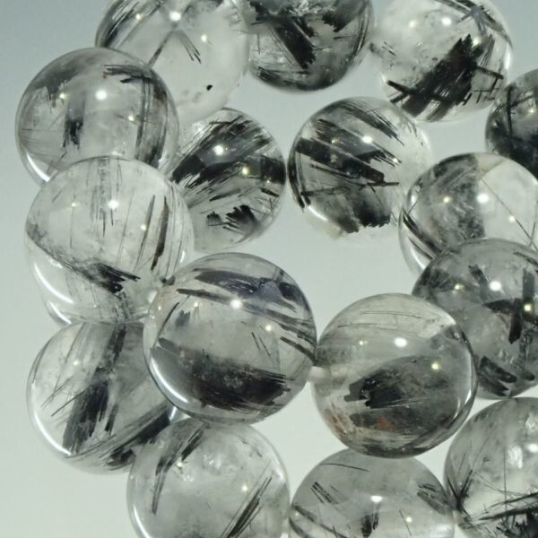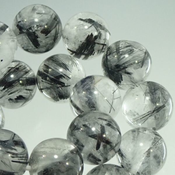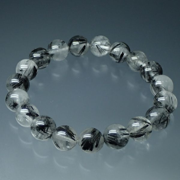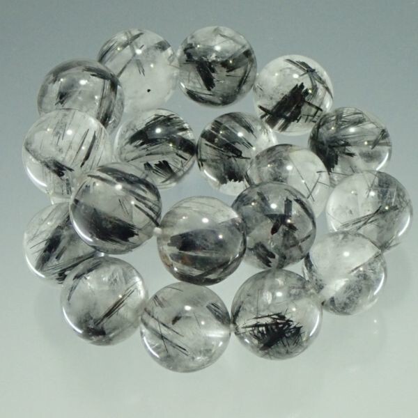 【ブラックルチルクォーツ】 約10mm(±0.数mm) 19粒 27.8g 水晶 トルマリン SZQ732 ブレスレット 男女兼用 天然石 パワーストーン